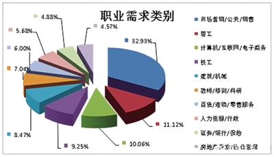 分析显示,除普工、技工、机械类职位全年岗位需求较同期呈现上涨趋势外,还可看出计算机、互联网、电子商务类职位也在十大热门招聘职位的前三名之中,占职位总需求的10.06%。其中,以互联网为代表的新经济行业力量为毕业生释放出大量的就业机会。我省知识密集型、高附加值的新产业就业呈现较快增长,就业弹性持续增强,这既是我省转变经济发展方式、谋求产业升级的结果,也显示了我省就业结构更加合理、更具有持续性。