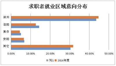 数据显示,省会郑州就业意向人数较2016年有所下降,洛阳、焦作、安阳等地级市就业意向人数呈现上升趋势。城镇就业人数增长幅度明显高于郑州的就业增长人数,全省区域就业格局更趋合理化。