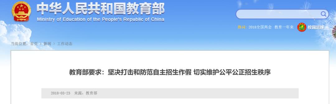 3月23日,教育部发布《教育部要求:坚决打击和防范自主招生作假 切实维护公平公正招生秩序》,对在自主招生中提供虚假报名材料的考生: