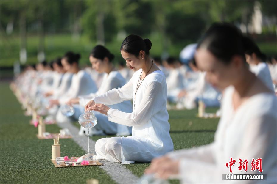 据悉,此次千人茶艺展示不仅是四川西南航空学院的一次专业课程展示,同时也是一次重要的传承教育。 钟欣 摄