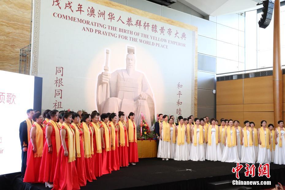 4月15日,澳大利亚华侨华人在悉尼举行恭拜轩辕黄帝大典。图为华侨华人在仪式上唱颂歌。中新社记者 陶社兰 摄