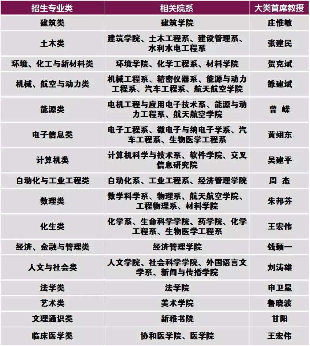 2017年,清华大学全面推行大类招生培养和管理,将纳入本科招生的所有专业整合为16大类,学生填报志愿的时候将需要按照专业类来填报。在大一年级,所有学生将接受大类统一的通识教育课程、专业导引课程、专业基础课程等,在大一结束前完成专业确认,并在大二进入相关院系开始专业学习。