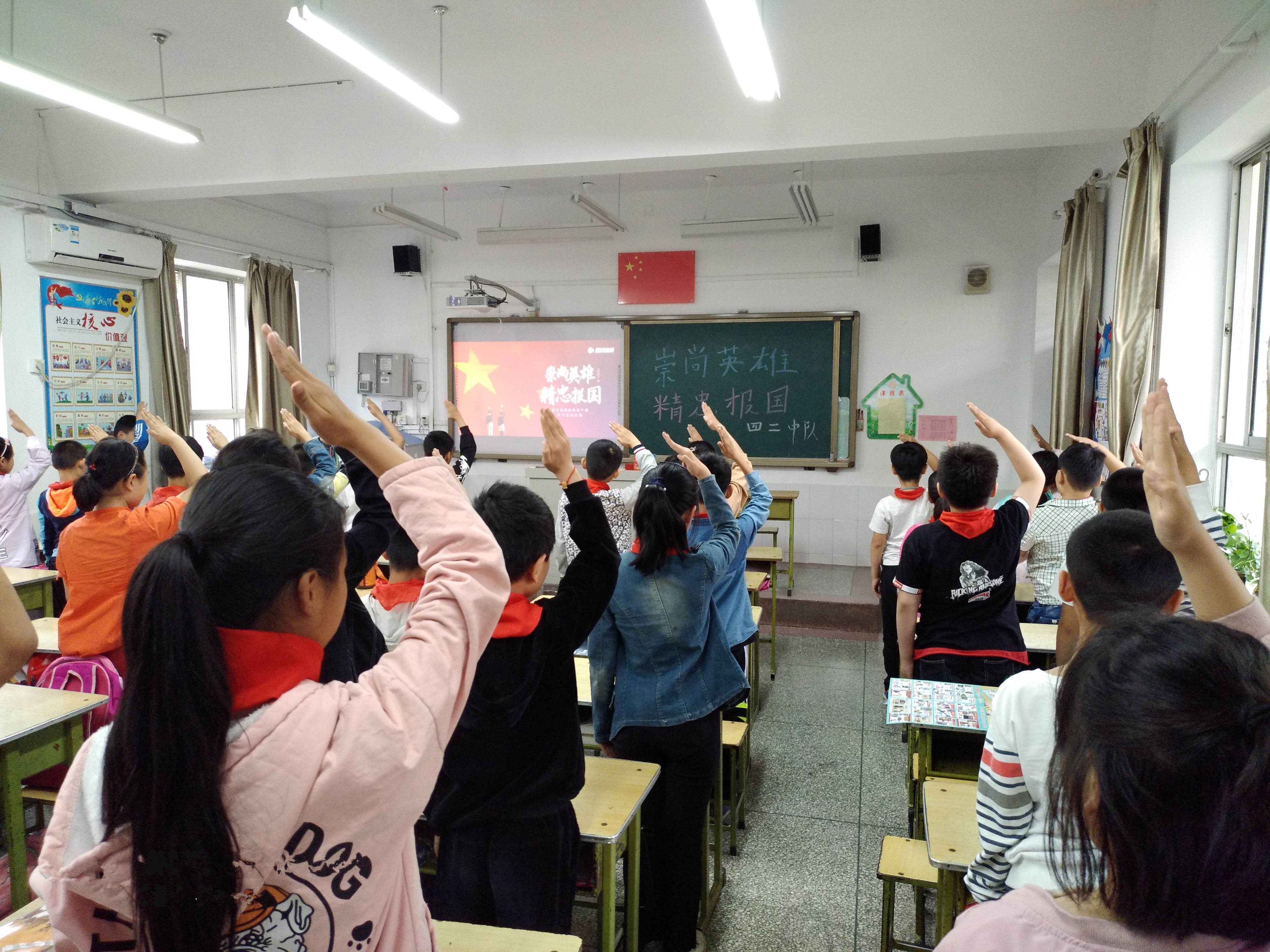辅导员老师和全体队员郑重宣誓“崇尚英雄 精忠报国”,这代表着决心和信心的宣誓声久久回荡在教室。