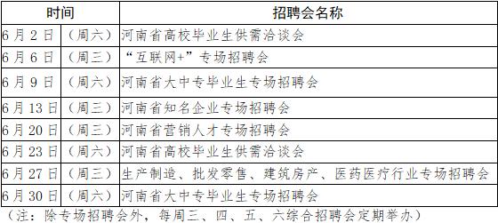 本次专项活动期间,河南人才市场将于6月2日、23日举办高校毕业生供需洽谈会,9日、30日举办大中专毕业生专场招聘会,四场专场招聘会预计将有360家用人单位参会,为毕业生提供近1.1万个就业岗位。