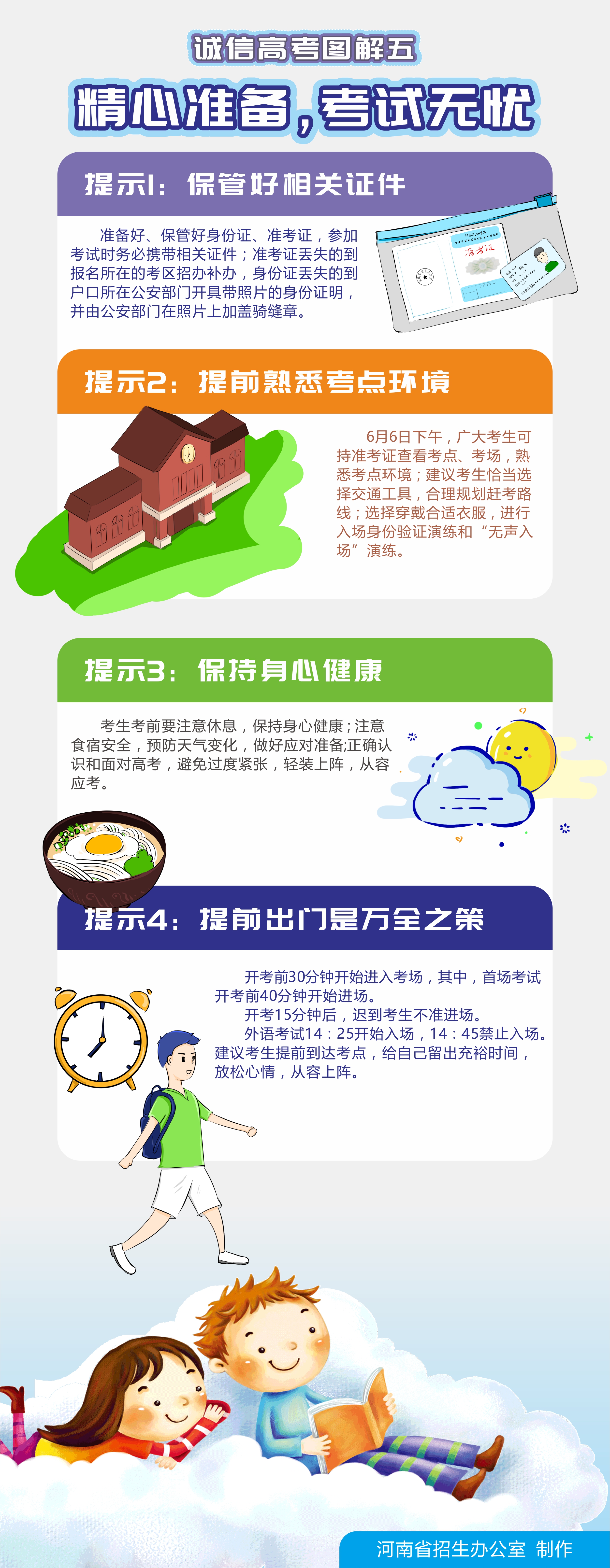 大河网讯(记者 张楠)还有三天,史诗级大片《高考,高考》将正式上映,6月4日,河南省招生办公室提醒各位考生,保管好相关证件、提前熟悉考点环境、保持身心健康,此外,考试当日提前出门,以免耽误考试时间。