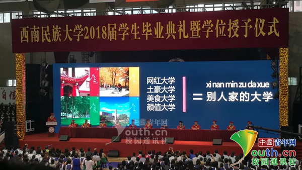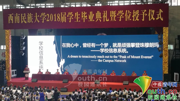 6月21日,西南民族大学2018届学生毕业典礼暨学位授予仪式举行,现场,该校校长曾明给毕业生们致辞,以《锦绣芳华在路上》为题为学生们上“最后一课”。