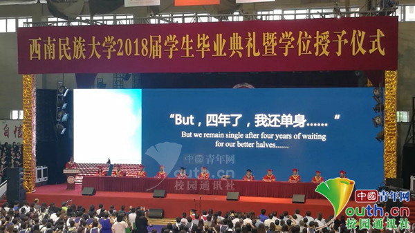 中国青年网北京6月22日电(记者 李华锡)“我知道,在你们心中,曾经有一个梦,就是顽强攀登被你们称为‘珠穆朗玛’的学校信息系统。”“没来的时候听说学校男女比是3:7,感觉分分钟包分配的节奏啊,但是四年了,我还单身……”把毕业致辞说成“吐槽大会”,说话如同“段子”且句句“扎心”,一段毕业典礼上的致辞让西南民族大学校长曾明成为了热点人物。3500余字的致辞,被数十次掌声和欢呼声打断,曾明也被同学们亲切地称为“段子手校长”!