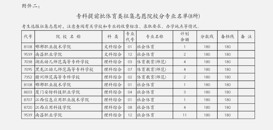 本次征集志愿仍执行原分数线(艺术类要求高考文化成绩达到180分和专业省统考成绩合格、体育类文化及专业成绩达到原定分数线要求,其余类别执行普通类高职高专录取控制分数线),凡高考成绩达到相应分数线、当前未被录取且符合条件的考生,可补报征集志愿的相应院校志愿。