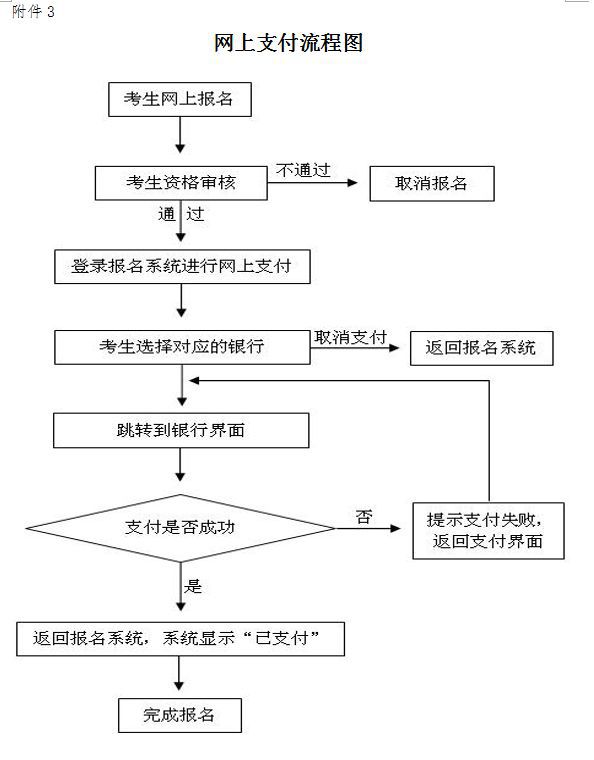 第九步:网上缴费。网上审核通过后,在网上缴费截止日期前,考生再次登录网上报名系统,按照系统提示进行在线支付考试费,缴费完成即为报名成功。逾期不缴费的考生视为放弃报考。