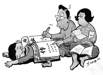 其实想想,作业是给孩子布置的,孩子们的水平老师清楚、家长也明白,孩子作业成了家长作业,自欺欺人大包大揽,实则后患无穷。做教育终归要踏踏实实,求新值得肯定,但过犹不及。假如舍本逐末,除了热闹一阵,什么也留不下来。(黄冠华/撰文李嘉/漫画)