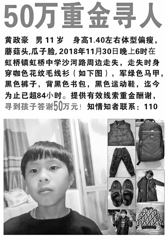 “我是黄政豪的父亲。谁能把黄政豪平安地带到我身边,我愿意拿出50万现金酬谢。”儿子走失的第五天,无助的黄爸爸通过视频作出重金酬谢的承诺,金额也从之前的20万陡升到50万。