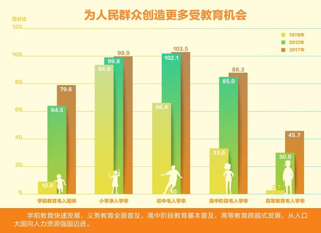学前教育快速发展,义务教育全面普及,高中阶段教育基本普及,高等教育跨越式发展,从人口大国向人力资源强国迈进。