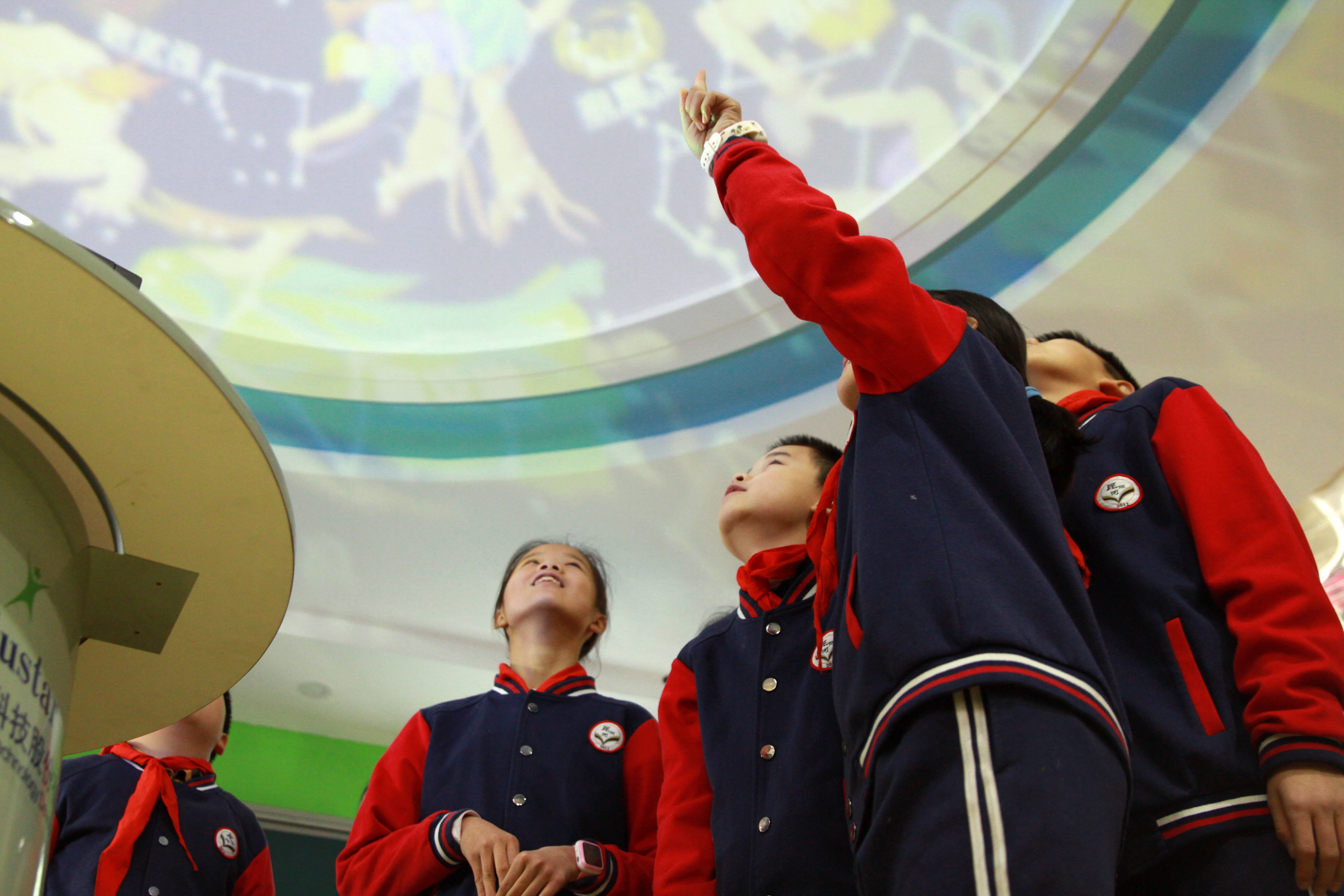 原来,12月19日上午,高诗棋所在的科学社团正在上课。当老师打开数字星球系统,为同学们在教室内模拟出一片星空,孩子们都惊喜地寻找着各自的星座。