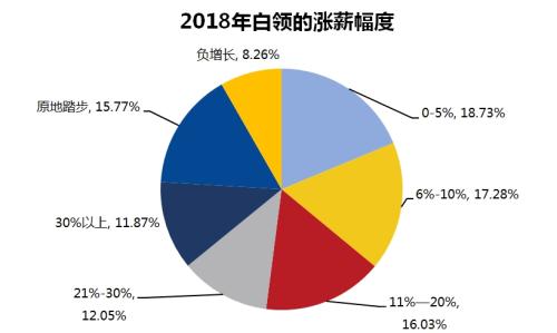 中新网客户端12月25日电(记者 邱宇) 智联招聘最近发起的调查显示,2018年,有超过七成的白领表示实现了涨薪,工资涨幅在0-5%的白领最多,为18.73%,工资在“原地踏步”和“负增长”的白领分别为15.77%和8.26%。工资水平越高,2018年薪酬涨幅超过30%的比例越大。月薪在2000元及以下的白领中,薪酬涨幅超过30%的仅为4.95%,月薪在25000元及以上的白领,薪酬涨幅超过30%的为48.50%。2018年,你的工资涨了多少?