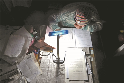 冬天的夜晚很冷,邹伟敏穿着厚厚的毛衣、戴着绒线的帽子,在唯一的一盏台灯前,不断地哈气取暖,手中还握着一支用于计算的钢笔。由于房间很冷,他的脸冻得有些发红,脸上的老人斑似乎都泛着红色。