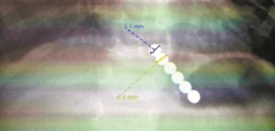 从X光片可以看到,6颗金属球黏在一起,夹住了孩子的食道粘膜组织,卡在了食道跟胃的交界处。在胃镜检查手术中, 医生进一步看见食道里面有两颗珠子,凹陷到壁里面,因为钢球的磁性,增加了手术的难度,经过一番努力,取出了两颗巴克球 ,粘膜组织受影响已发红水肿。