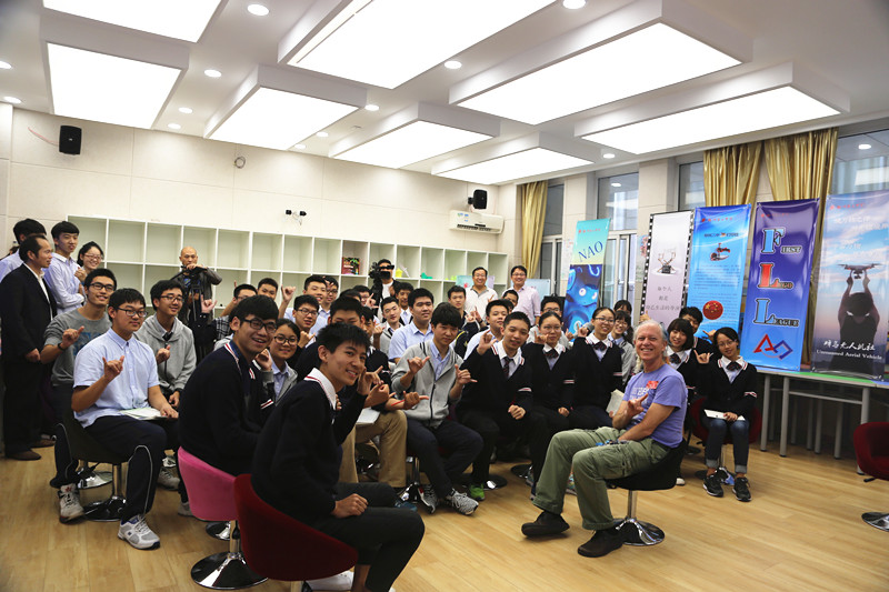 郑州二中小创客与世界创客风云人物米奇•奥特曼在一起