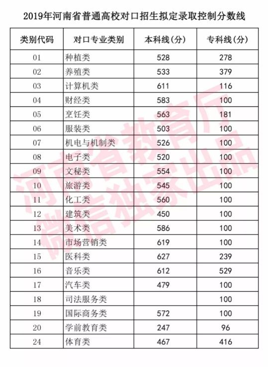 人民网北京6月25日电据河南省教育厅官方微信消息,河南省2019年普通高校招生考试各类别录取控制分数线如下: