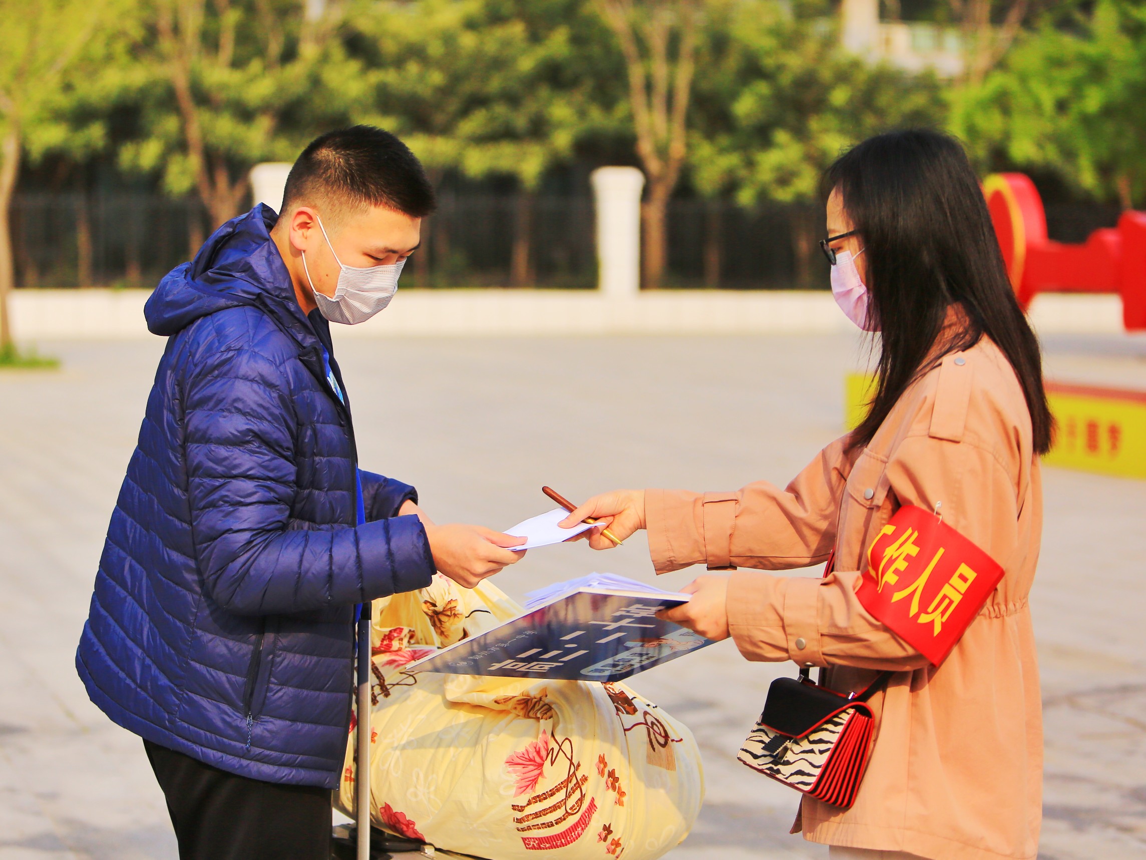 为了加强疫情防控,此次开学不仅设置了东门和南门双门入口通道,还要学生提供14天健康记录等资料,并且进行了分批次报到,避免学生扎堆。