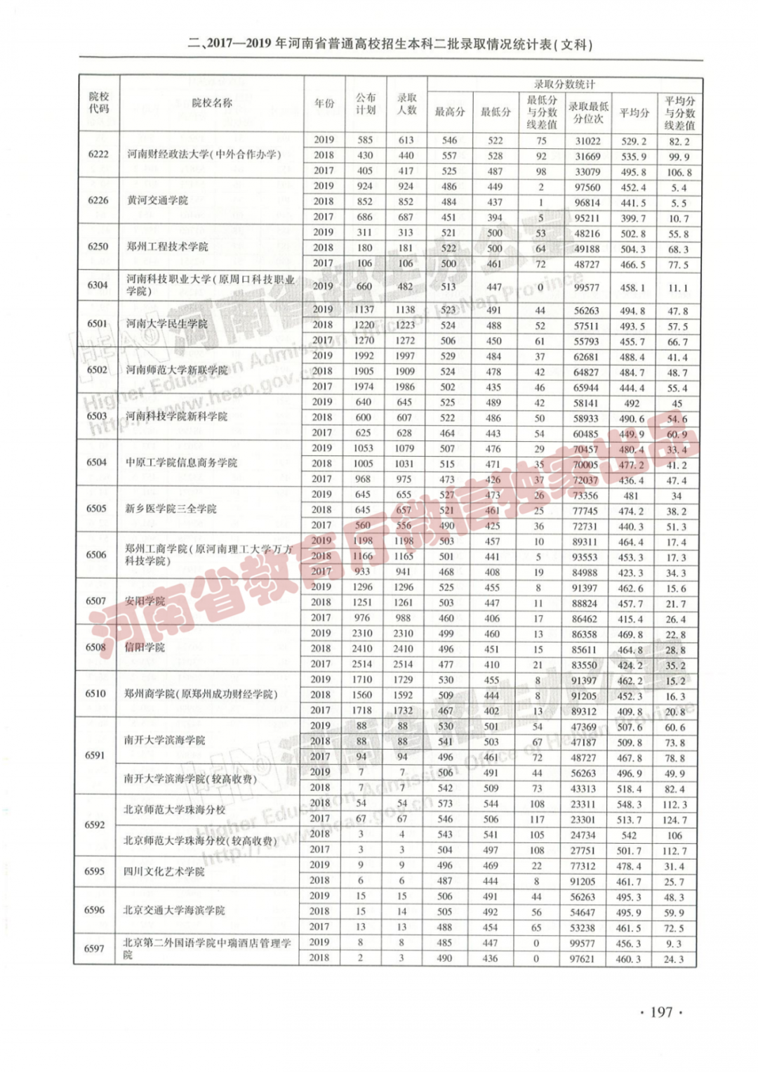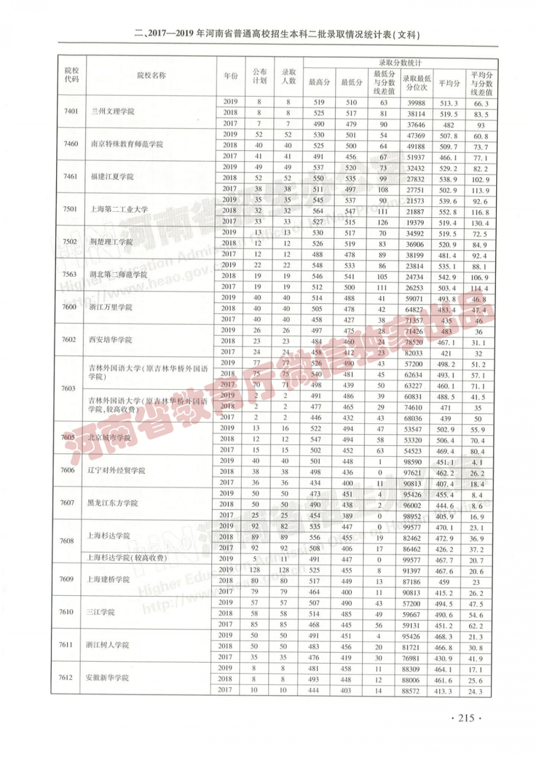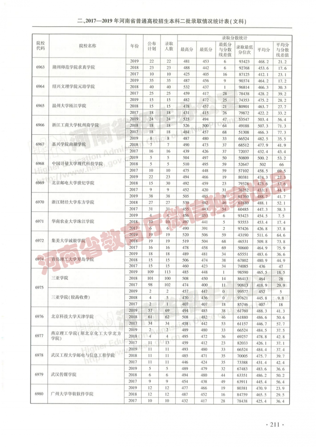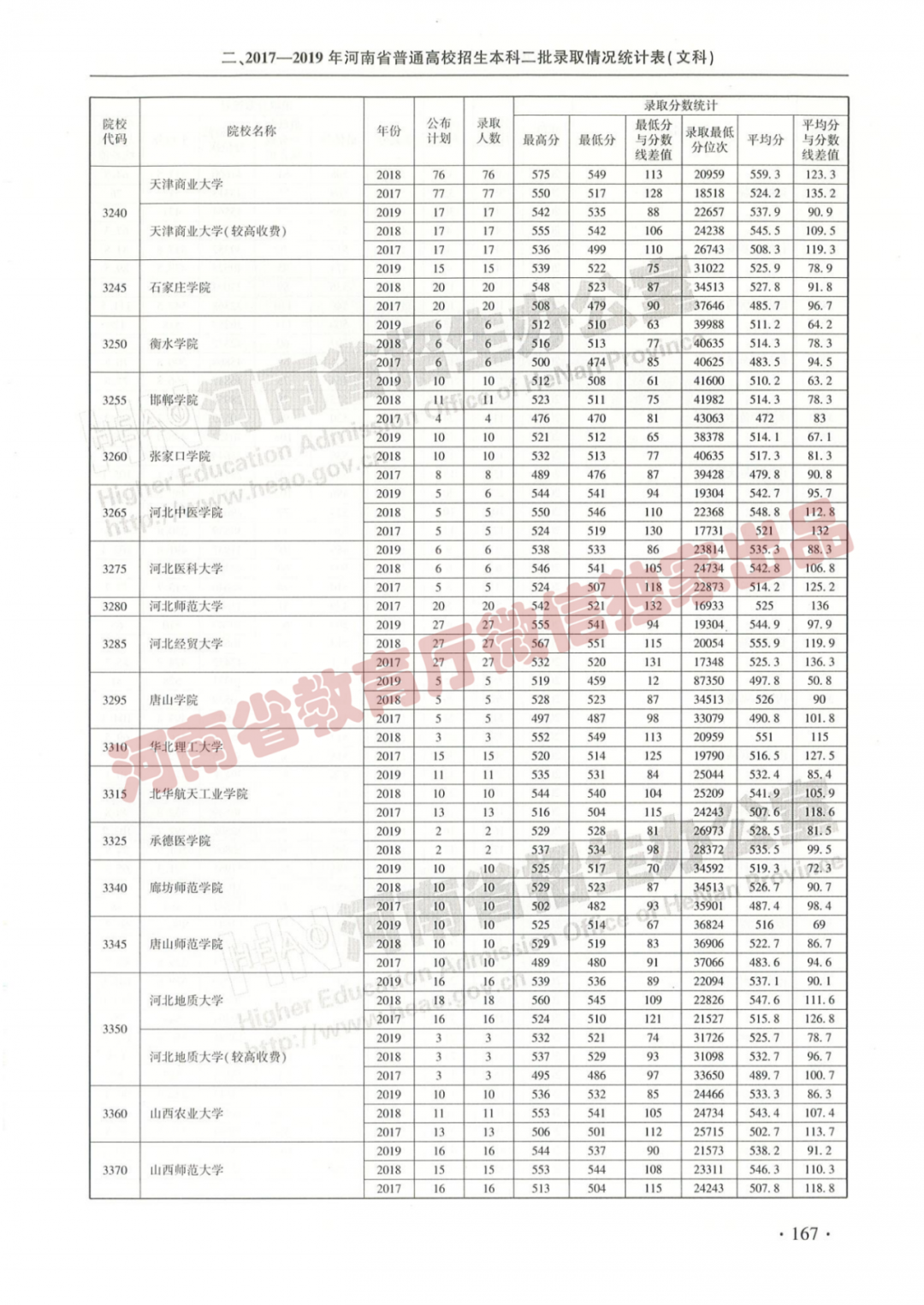 今天,小编整理了2017—2019年在河南招生的全国本科二批院校(文科)最低录取分数线、录取最低分位次,供大家填报志愿参考。让每一分都有价值。