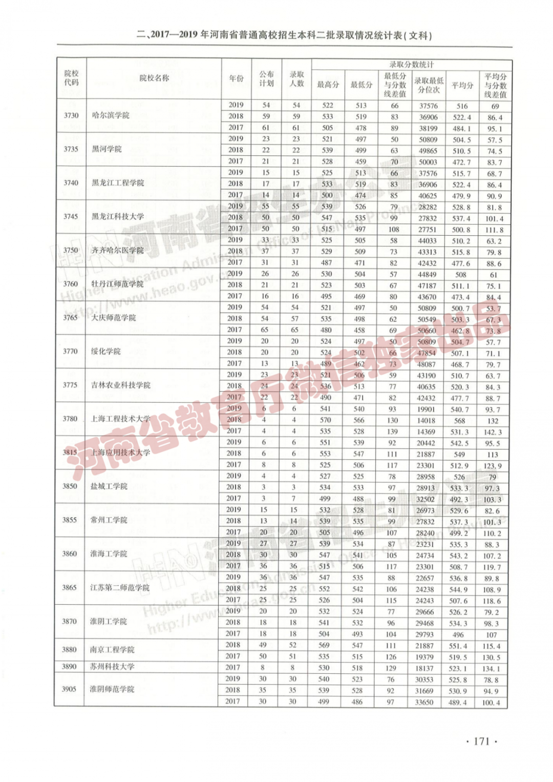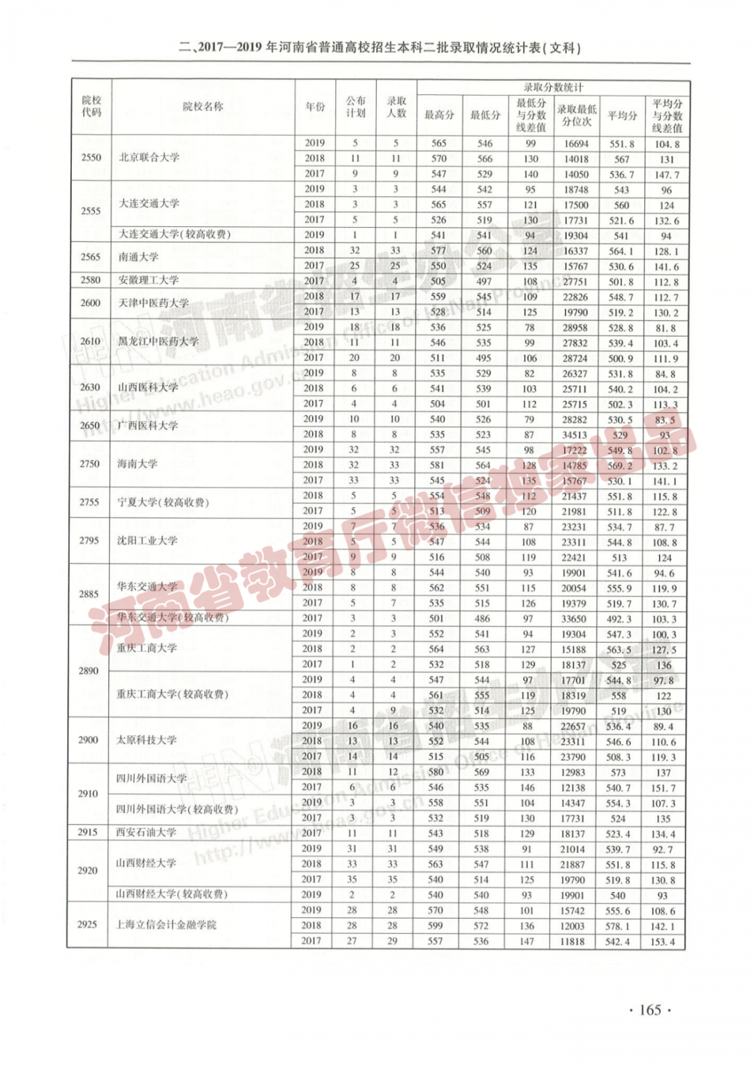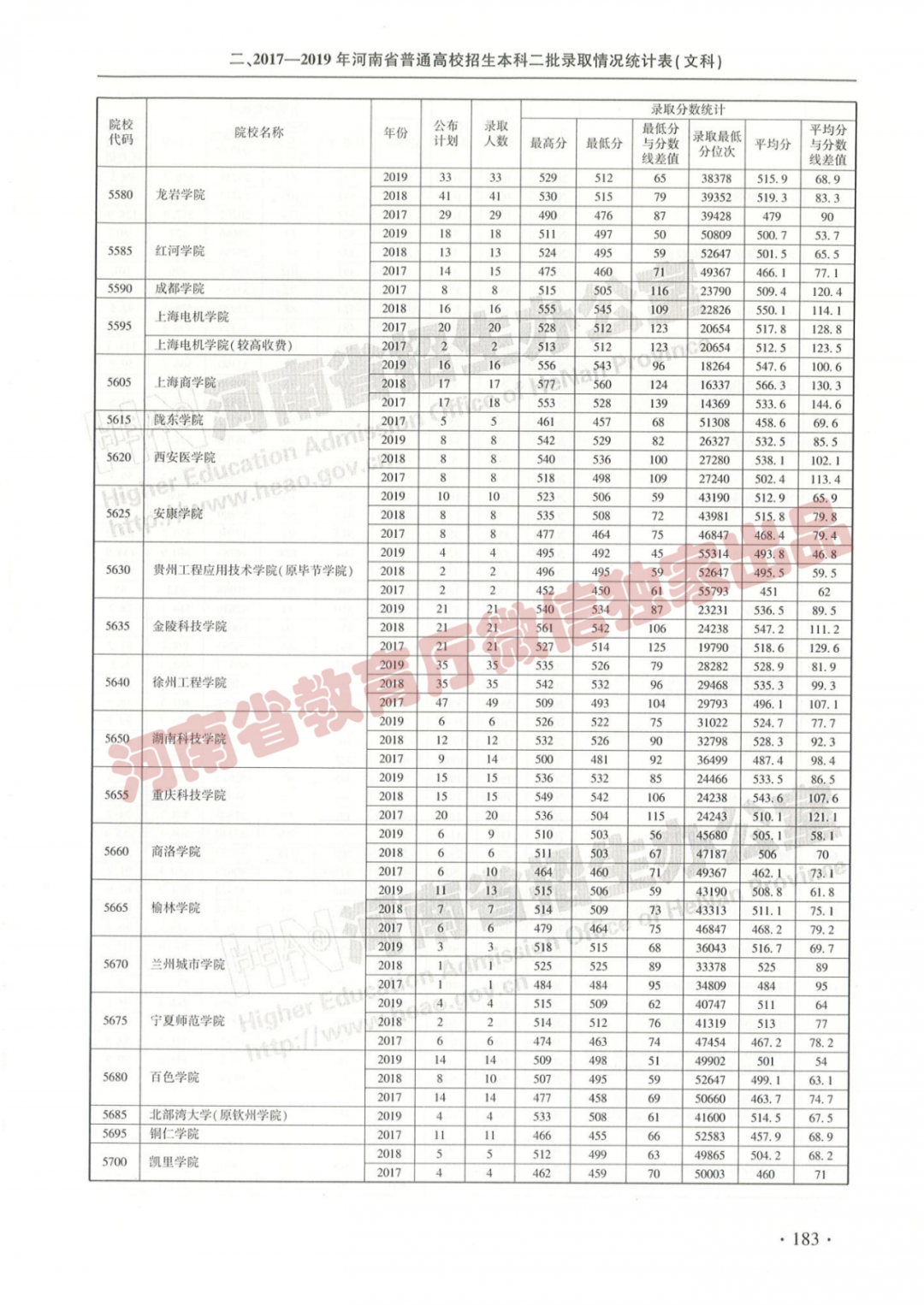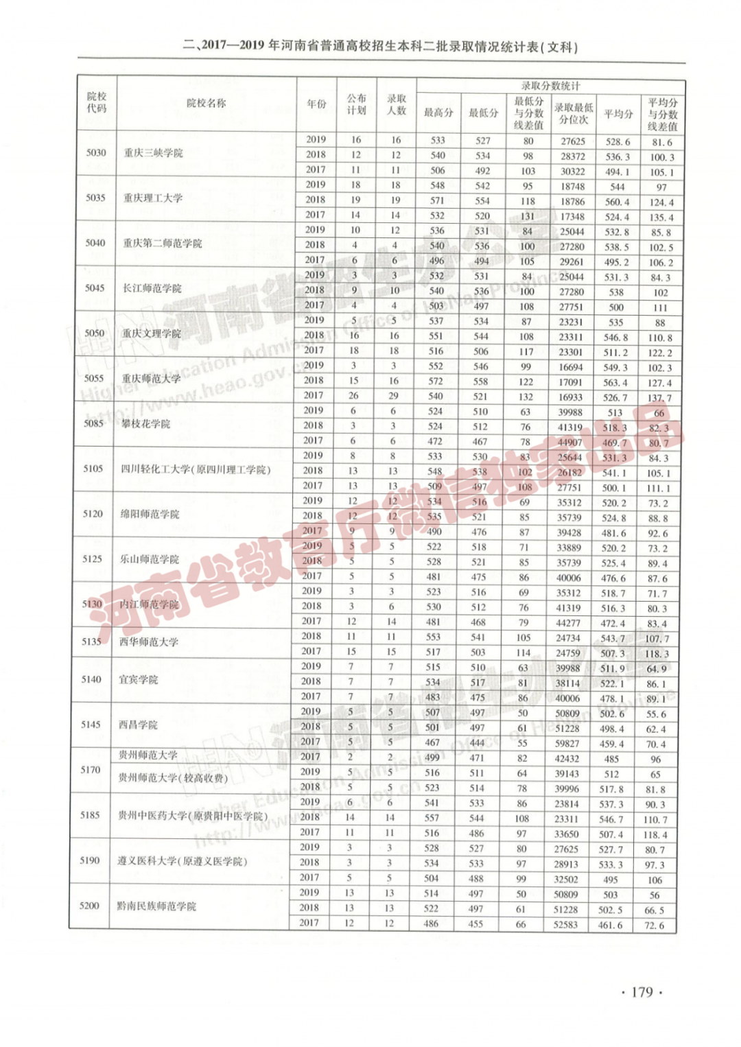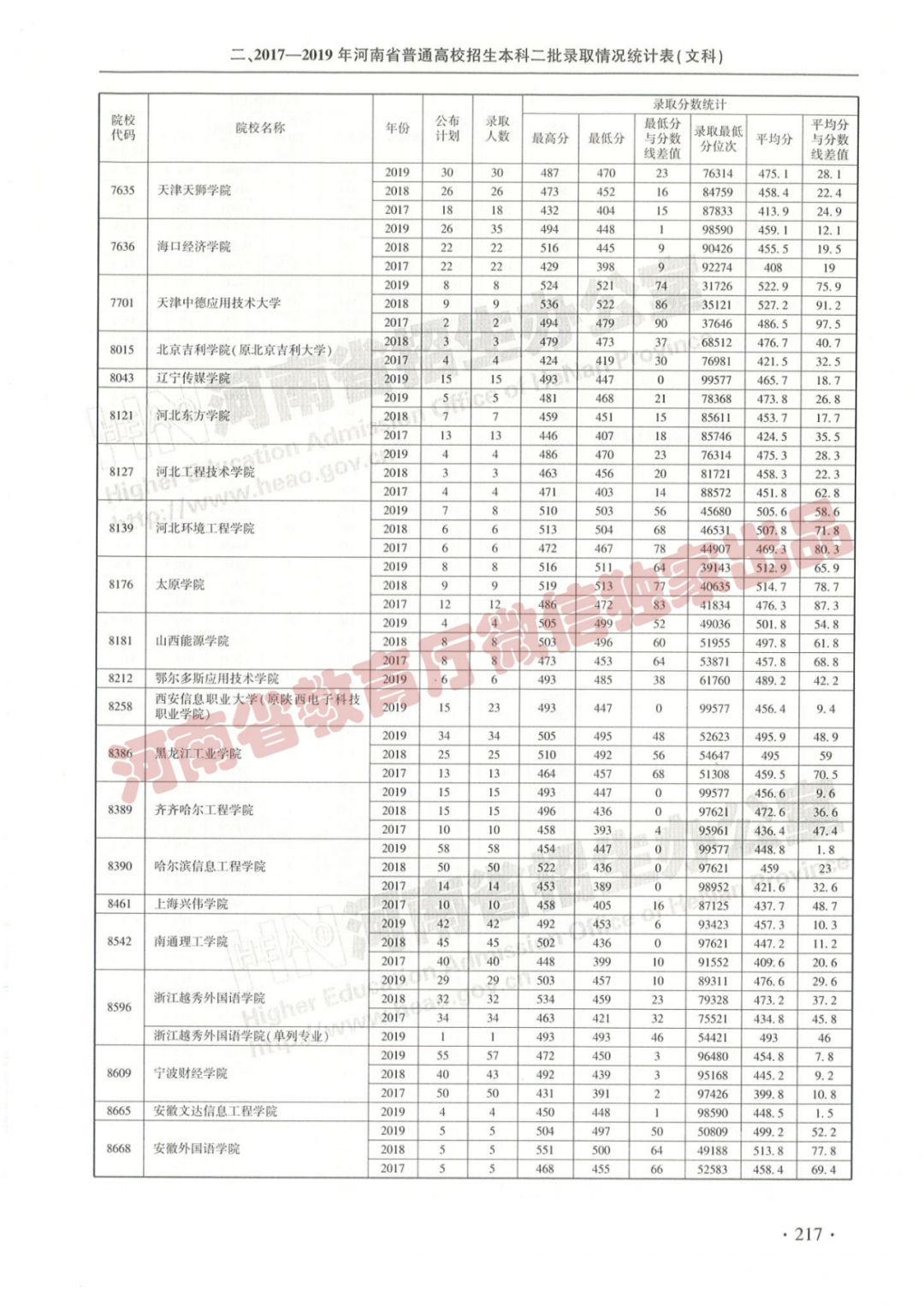 今天,小编整理了2017—2019年在河南招生的全国本科二批院校(文科)最低录取分数线、录取最低分位次,供大家填报志愿参考。让每一分都有价值。