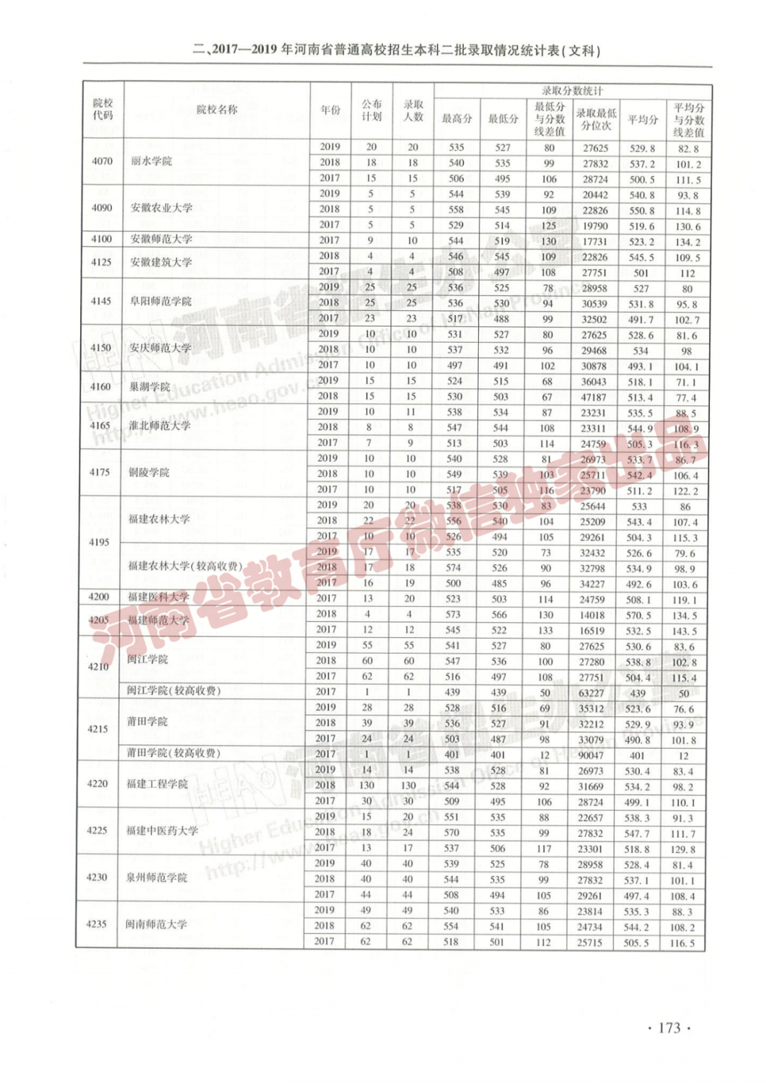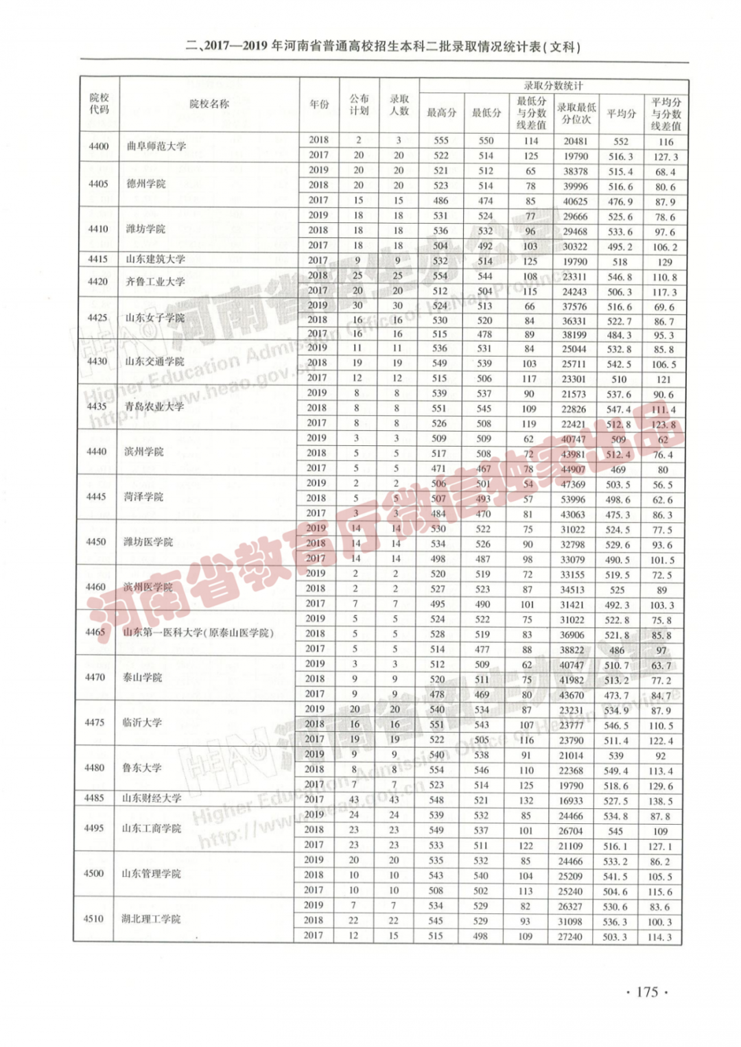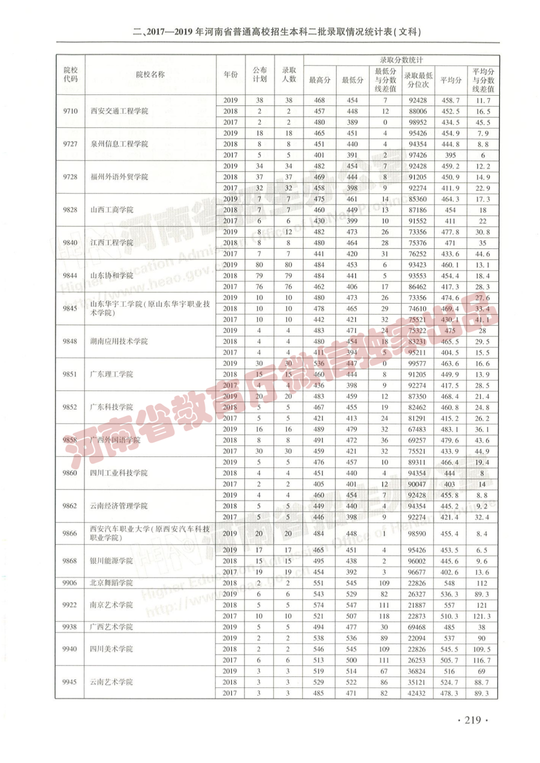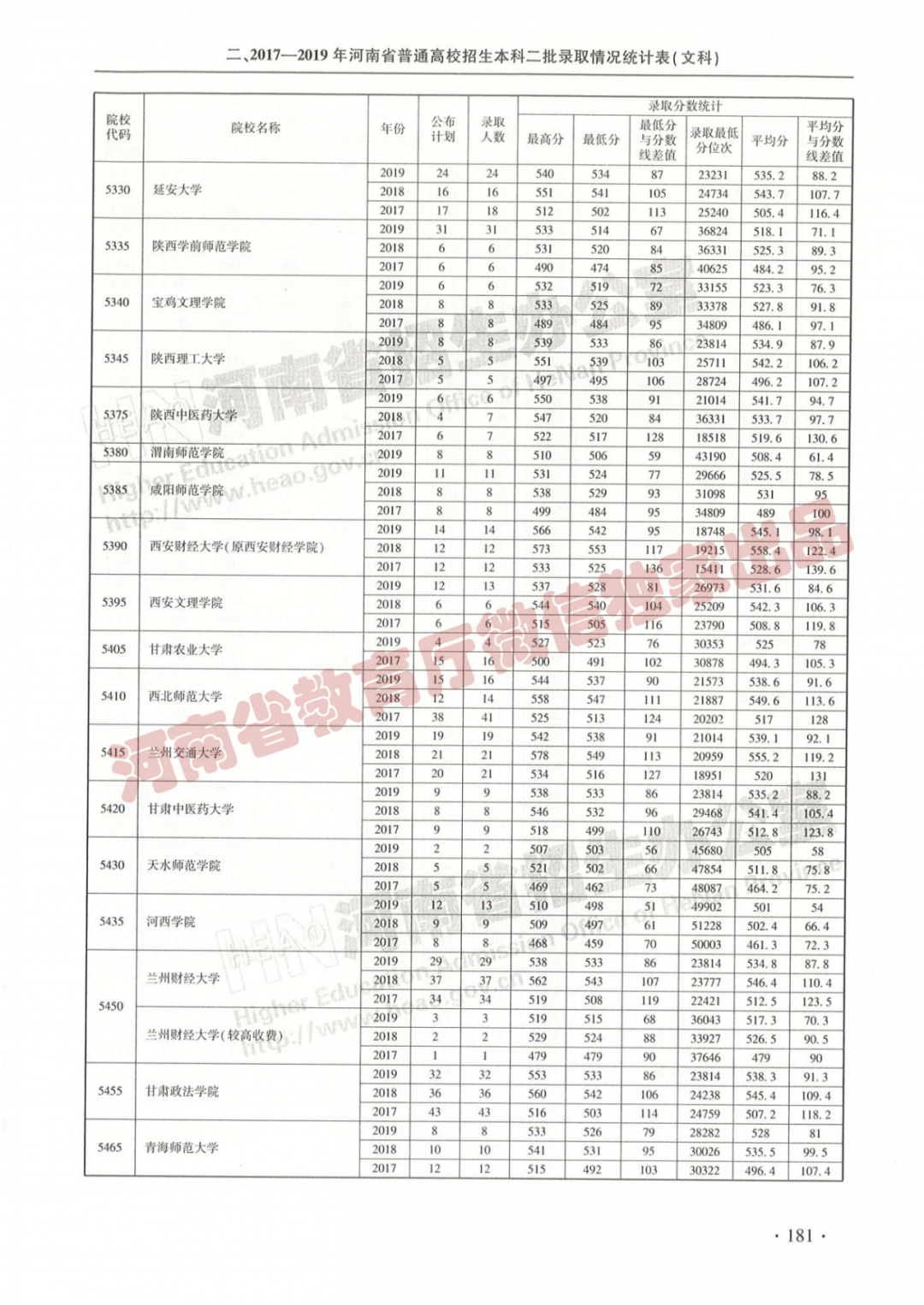 今天,小编整理了2017—2019年在河南招生的全国本科二批院校(文科)最低录取分数线、录取最低分位次,供大家填报志愿参考。让每一分都有价值。