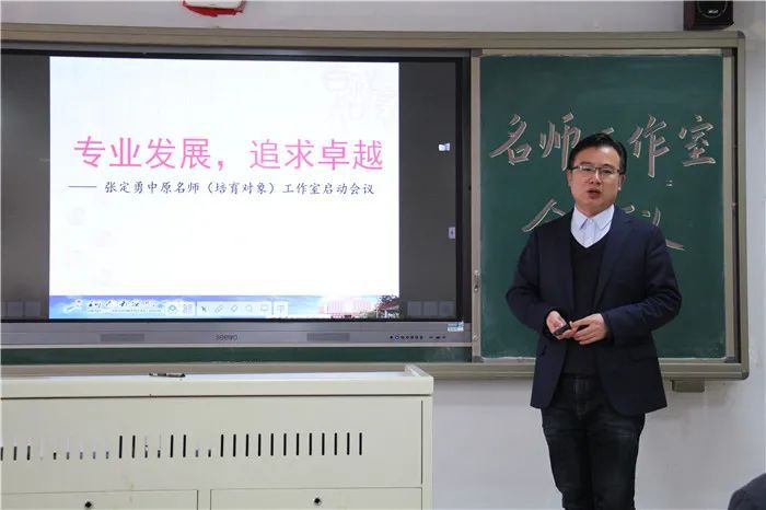 我校目前共有4个省级名师工作室,除了今天启动的“张定勇高中语文中原名师(培育对象)工作室”外,还有“时玮芬初中语文中原名师工作室”“耿珣初中生物省级名师工作室”和“陈玲琴高中英语省级名师工作室”。名师工作室在提高学科教研水平、提升教师队伍专业素养、培养年轻骨干教师等方面发挥着至关重要的作用。
