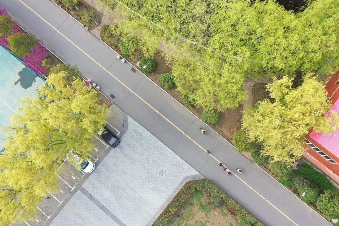 40米宽的绿化带让这条两路看上去亭亭碧玉,静静溪月,动人无限遐思,是学生们喜爱的户外活动佳地。