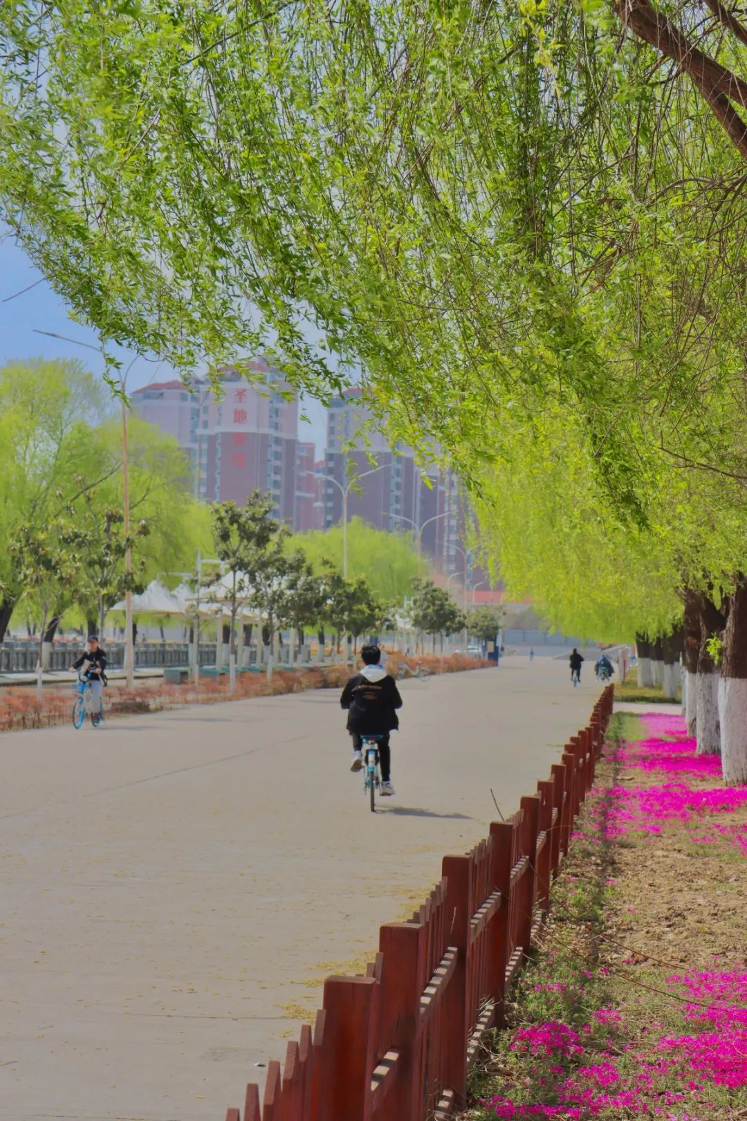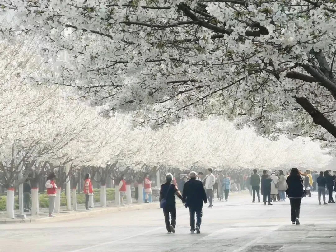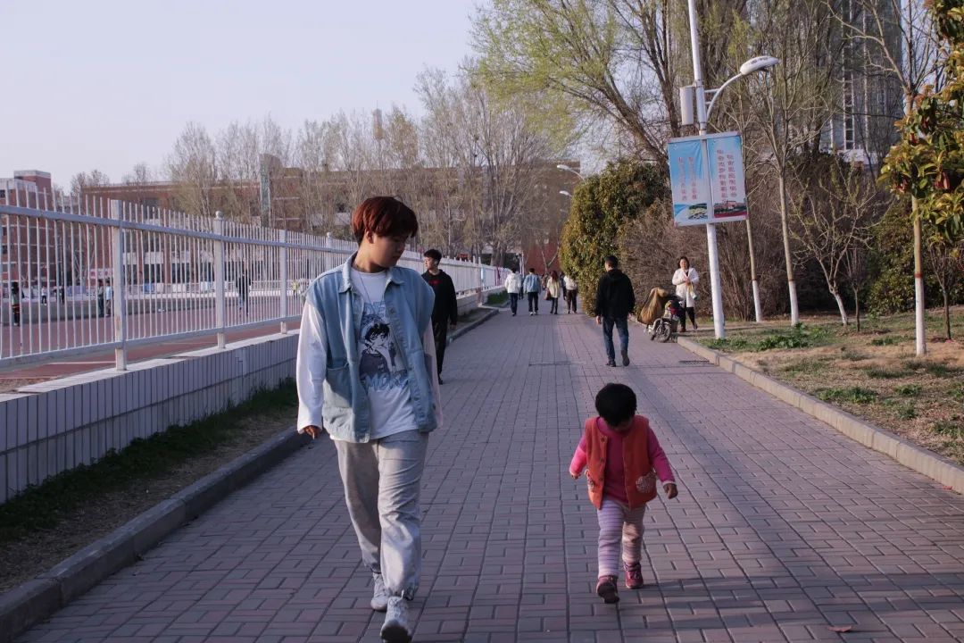 春天的轻大校园里的花纷纷盛开,道路两旁的树也已抽着新芽,蓄力储备养分,正在等到着叶繁枝茂。而道路上,背着背包的行人三三两两,或说笑或打闹,和静立的树木形成了一动一静的风景。