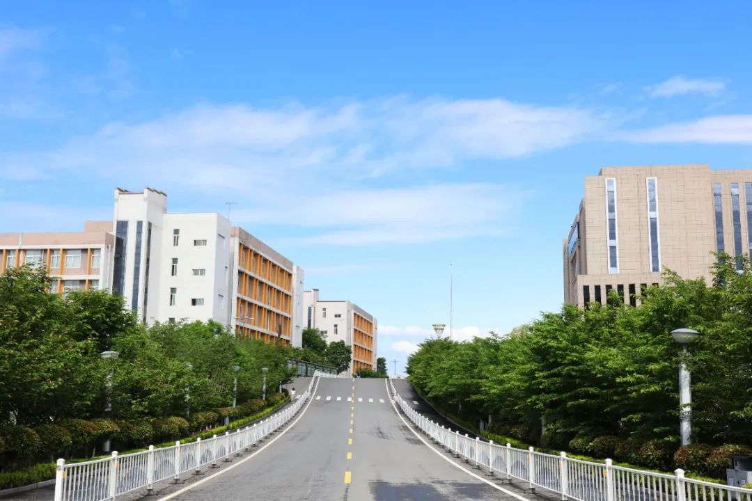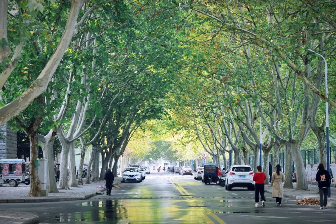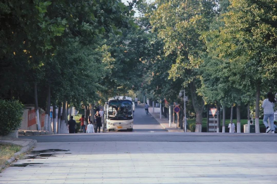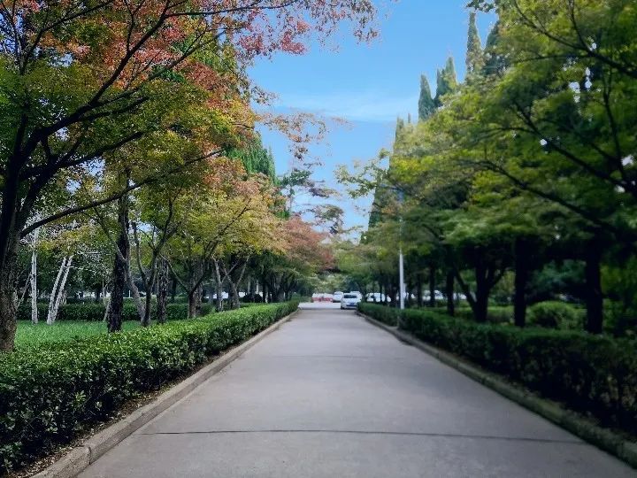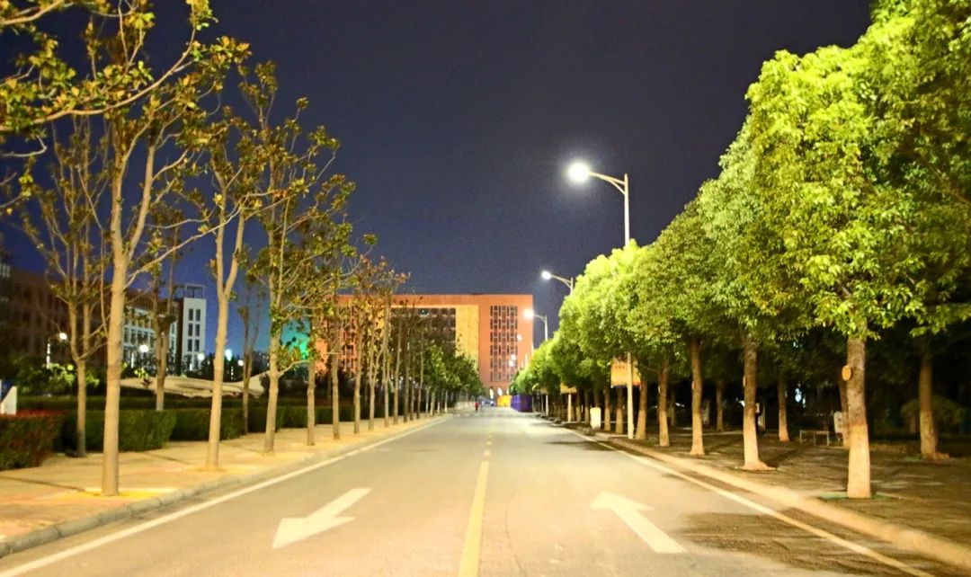 博学路宽阔平坦,给予学生以向前的勇气,道路两旁的树木郁郁葱葱,青翠欲滴,摆出友好的欢迎姿态,路上树影斑驳,时光静好,提醒着学子在路上认识自己,积累学识。