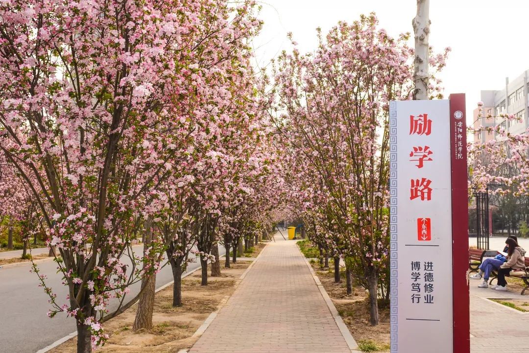 励学路西起安阳师范学院西门,通向逸夫图书馆,勉励安师学子不忘初心,砥砺前行,励志成才。励学路上,春有海棠盛开娇艳动人,冬有落雪成诗枝头相依。一路上,是师者的谆谆教诲,是安师学子的点滴进步。