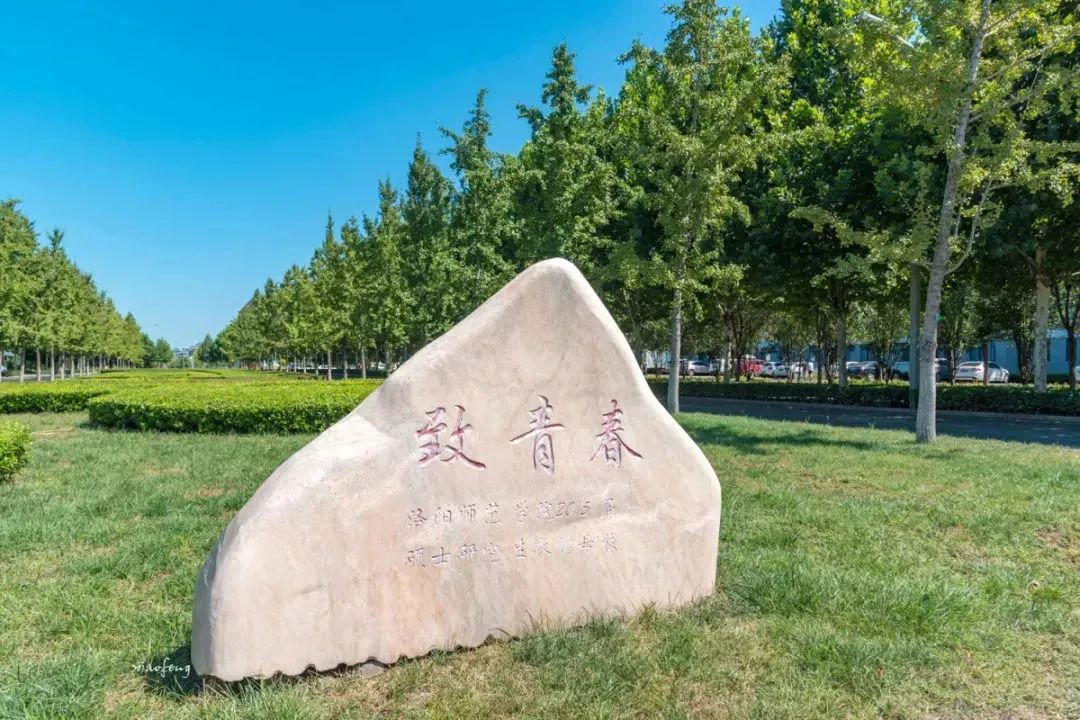 立雪大道是进入西大门的第一条路,最初,是它带我们走入洛师,后来,我们常常从这里走。再往前走,便能看见这块刻有致青春的大石头,这块石头经过风吹雨打字迹已经没有原来那么清晰,但是我们的青春早已深深地埋藏在这里。一百年风雨,一百年变迁,一百年奋进,带着期望,洛师的未来会发出更耀眼的光芒。