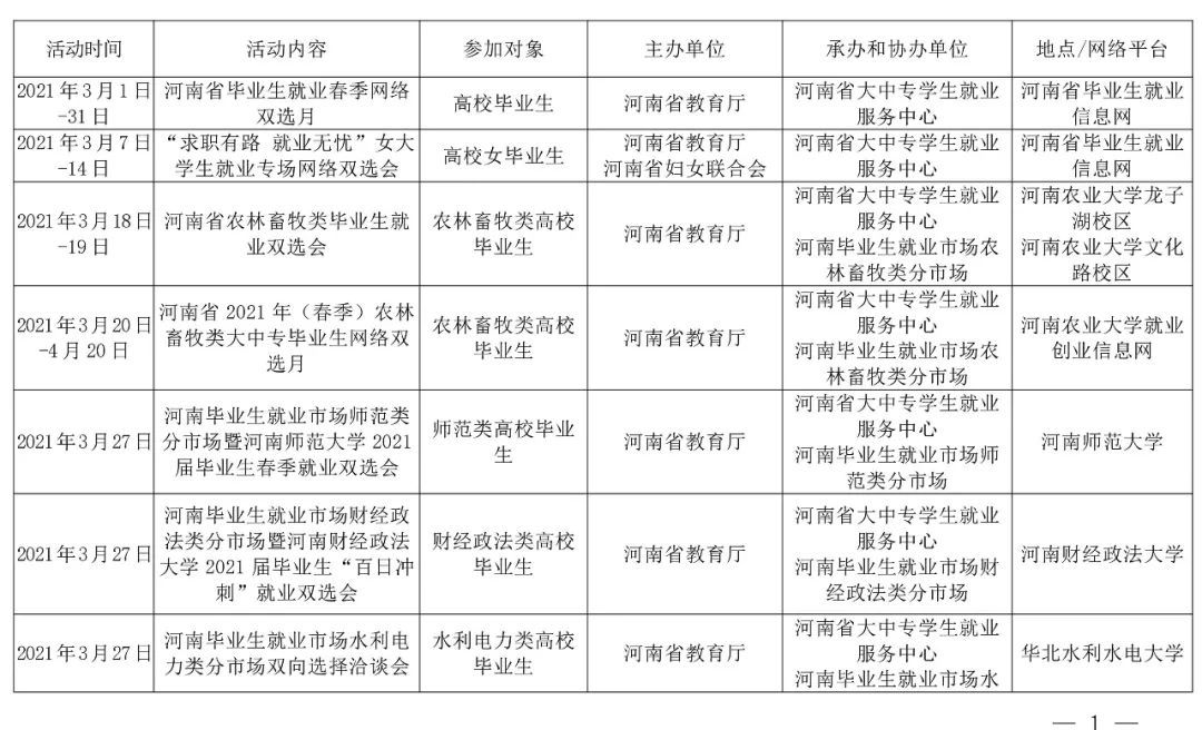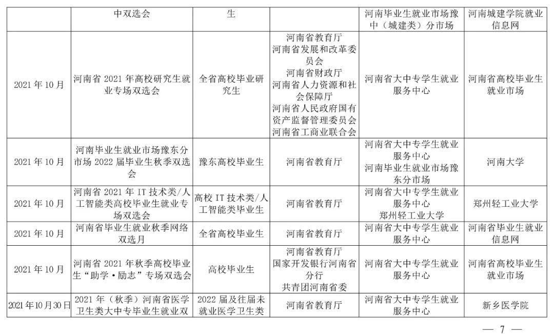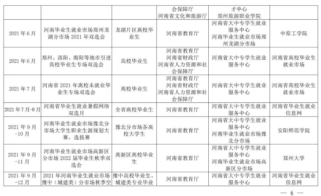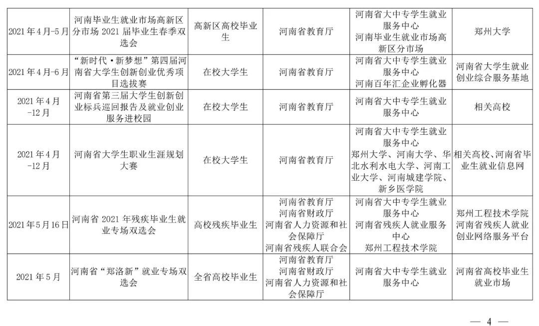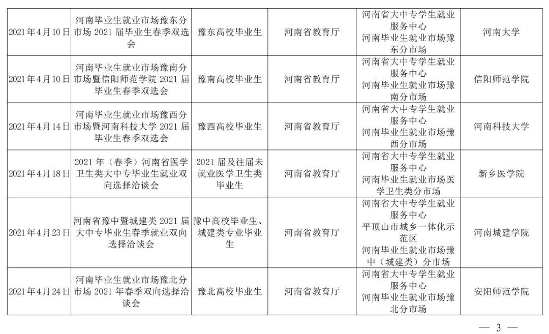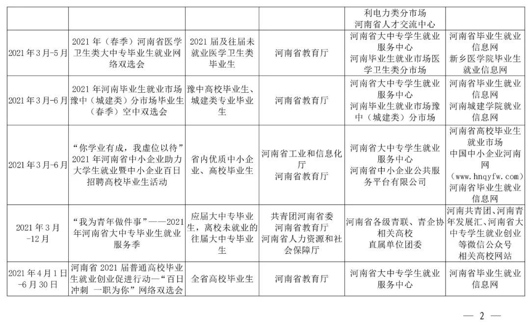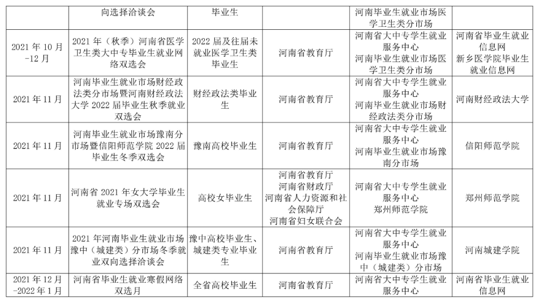 注:部分线下活动举办时间视疫情防控要求另行通知,具体活动通知可在河南省毕业生就业信息网查询。
