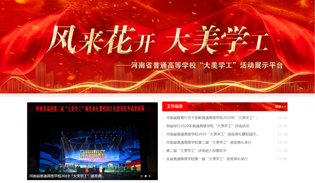 2019年12月3日,河南省普通高等学校2019“大美学工”颁奖典礼暨校园文化建设优秀成果展演在新乡市平原文化艺术中心上演。
