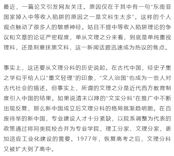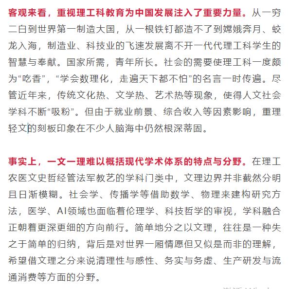 所以,抽象讨论文理科优劣,意义不大;说文科生耽误国家发展,更是荒谬。但要看到,网友对此饶有兴趣的背后,仍然有真问题需要我们读懂。