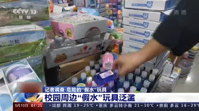 在文具店,购买“假水”玩具的学生不在少数。“假水”玩具外形就像缩小版的饮料瓶,外观和色彩与目前市场上多款知名饮品包装高度相似。