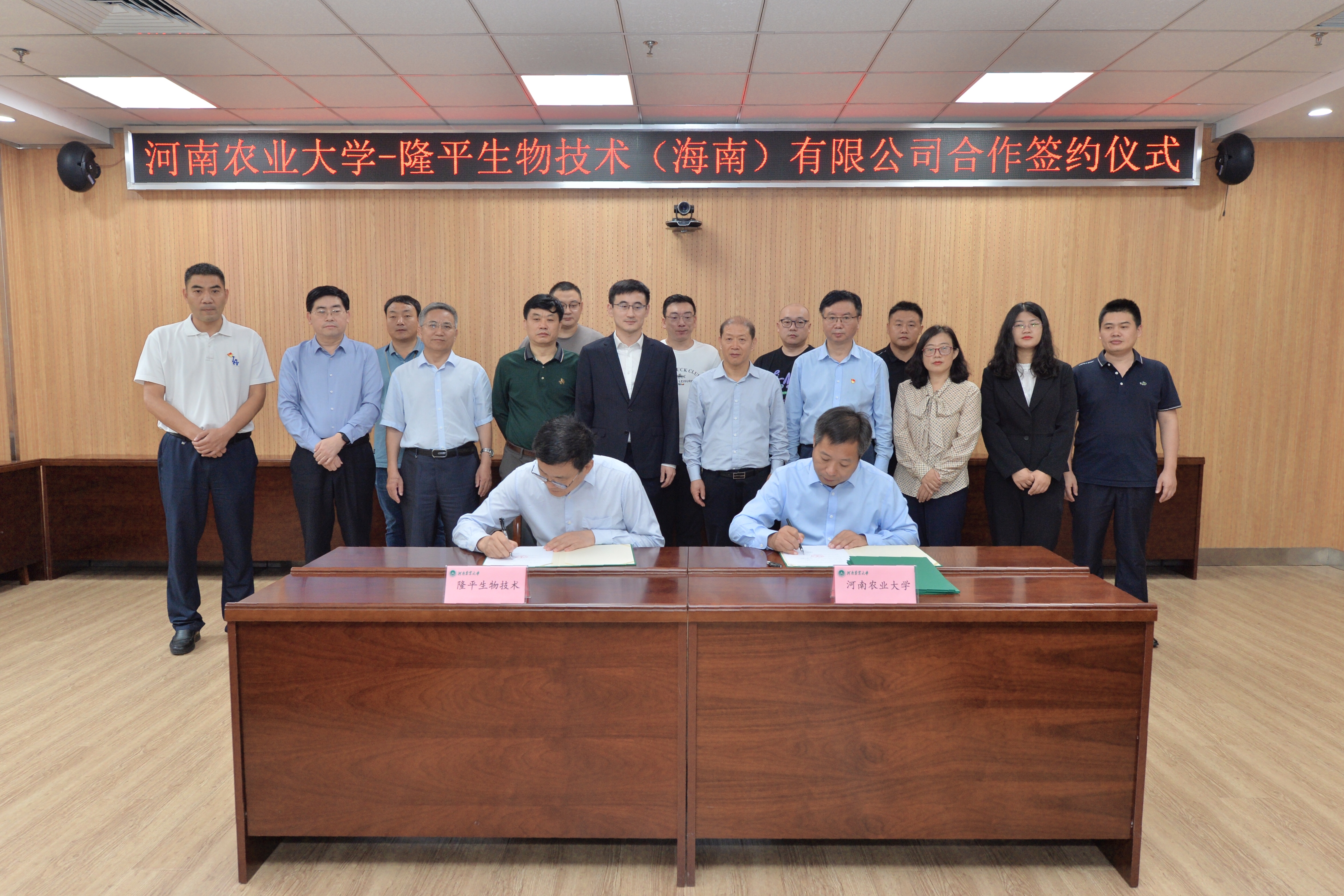 汤继华教授、吕玉平博士代表双方签署合作协议。根据协议,河南农业大学将获得隆平生物技术(海南)有限公司1000万元研发经费支持,标志着双方合作进入实质性发展阶段。