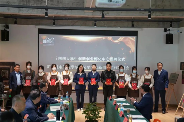 揭牌仪式上,庞璐璐首先邀请领导嘉宾共同为“i创创大学生创新创业品牌孵化中心”“河南爱创创商业运营管理有限公司”“河南机电职业学院创新创业产教融合示范基地”揭牌;宣读了“河南爱创创商业运营管理有限公司”管理团队任命通知。企业代表陈波、服装学院院长阮肇民共同为河南爱创创商业运营管理有限公司管理团队颁发聘书。