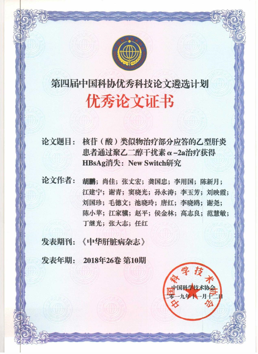 胡鹏New Switch研究获评第四届中国科协优秀科技论文。学校供图 华龙网发