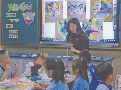 山东省潍坊市奎文区宝通街小学的学生在美术教师指导下学做纸雕。曹洪文 摄