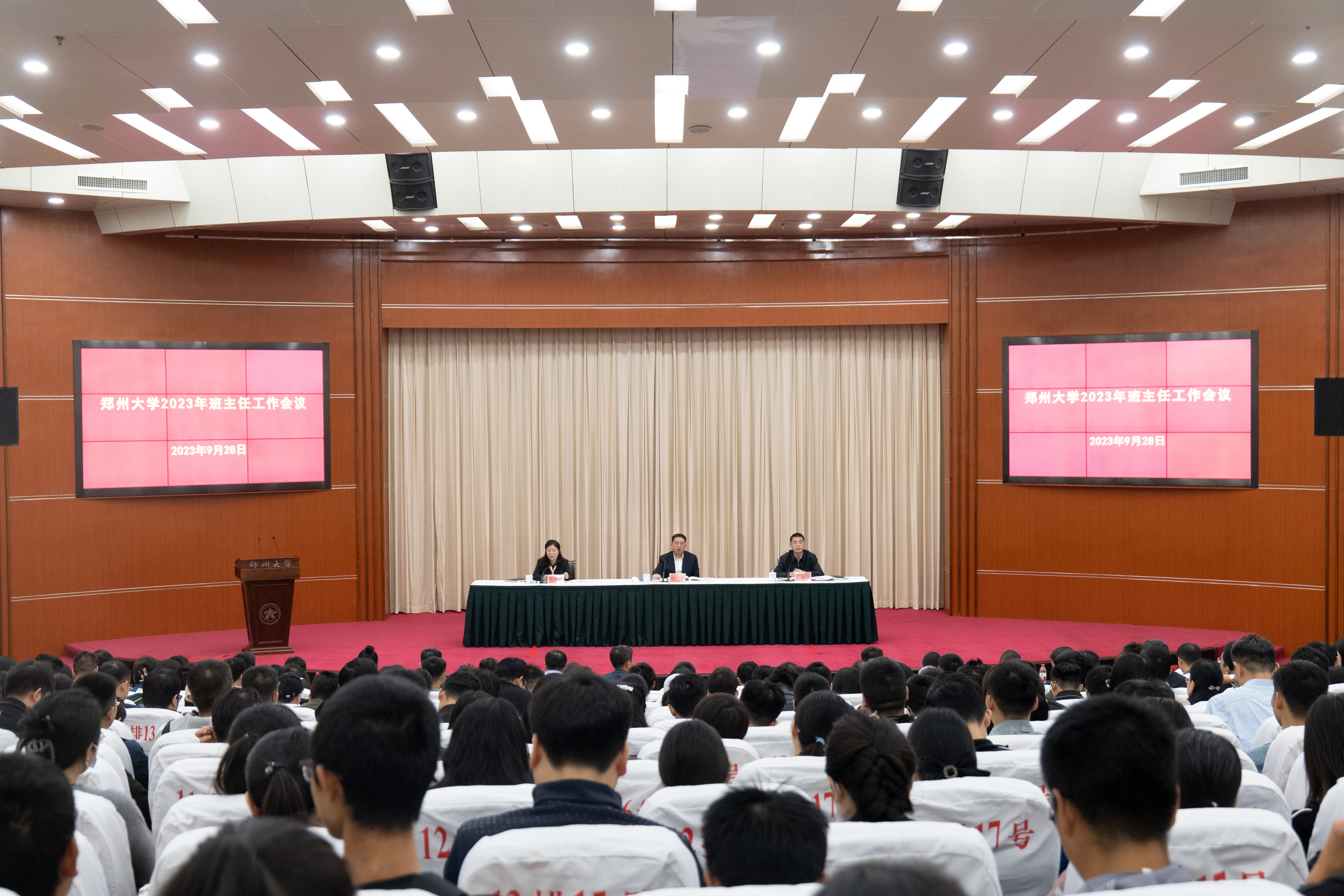 9月28日,郑州大学召开2023年班主任工作会议。校党委书记别荣海出席会议并讲话,副校长张倩红出席。校党委常委、宣传部部长厉励及人事处、教务处、党委学生工作部、校团委等部门负责同志,各院(系)主管学生工作的班子成员、2023级新生班主任、辅导员和学生代表参加会议。校党委副书记吴宏阳主持会议。