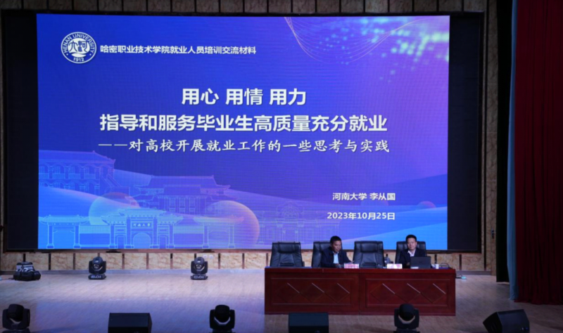 10月25日,对于哈密职业技术学院的师生来说,是特别的一天,更是被知识冲击而极其难忘的一天。在河南援疆干部人才、哈密职业技术学院党委委员、副院长史富强热心推荐和积极协调下,河南大学就业创业指导中心主任、创新创业学院院长李从国教授应邀参加学院大学生职业生涯发展系列活动,助力哈密职业技术学院学生培养和高质量就业工作迈上新台阶。厚重的豫哈情谊,将“携手绘‘疆’来”变成了一帧帧“实景图”。