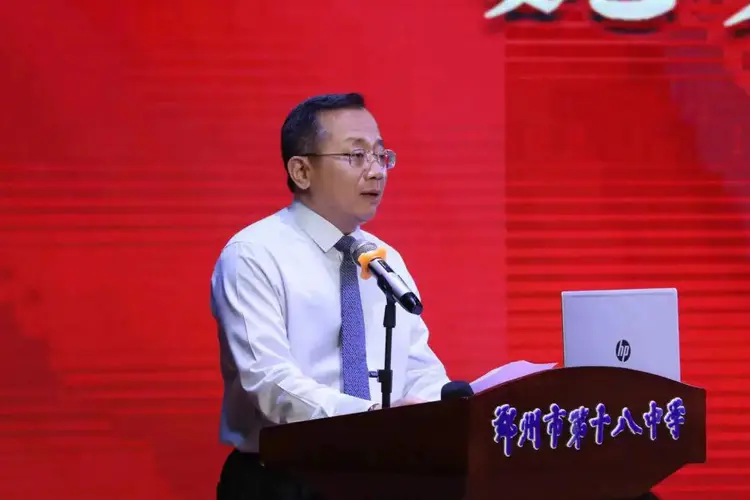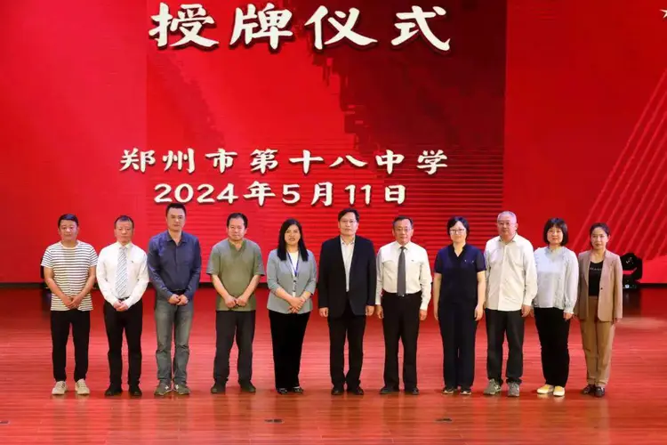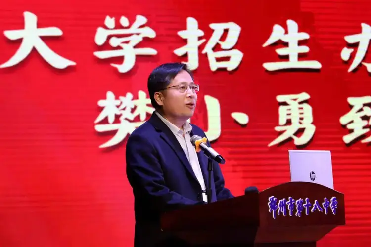 郑州市第十八中学党委书记段亚萍、校长魏勇、副校长倪海军、工会主席张恺、教务处主任司彩贞、办公室主任宋逸凡出席授牌仪式,活动由副校长郭鹏主持。魏勇代表郑州市第十八中学致辞,他对河南大学一直以来给予的指导与帮助表示感谢。他认为,河南大学“优质生源基地”授牌不仅是对学校人才培养成果的充分肯定,也开启了两校在“双高”协同育人背景下创新人才培养的新篇章,期待未来双方能有更加深入的交流与合作。