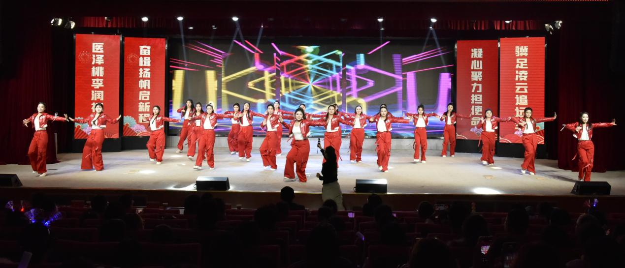 晚会在气势恢宏的开场舞蹈《锦绣大中华》中拉开帷幕,瞬间点燃全场热情。节目形式多样、内容丰富,涵盖舞蹈、小品、情景剧、歌舞剧等多种类型,既展现了中华优秀传统文化的深厚底蕴,又彰显了新时代青年的创新活力与责任担当,现场灯光璀璨、节目精彩纷呈,分“青春律动 璀璨年华”“仁心启航 再创辉煌”上下两个篇章依序展开,抽奖环节更是引爆全场,处处洋溢着辞旧迎新的喜悦氛围与蓬勃向上的青春朝气。《奔跑吧青春》《我们一起闯》《强校有我》《叶语・守护》《家乡月》活力绽放,以多样舞姿演绎青春追梦的执着,传递“强校有我”的责任担当。《青花瓷》《AI 穿越时代》《中医里的武舞情缘》《象王辞・梨园赋》尽显文化交融之美,传统与创新碰撞,呈现兼具底蕴与创意的视听盛宴。《河护有我 追梦前行》《一盏灯》以铿锵嘹亮的嗓音,展现出老中青三代河护人扎根教育、追逐梦想的初心坚守与对未来的热忱。《校园漫谈》《消失的周末》以幽默演绎校园生活插曲,引发全场共鸣。晚会在《我爱你中国》的激昂旋律中落下帷幕,炽热的家国情怀在现场久久回荡。