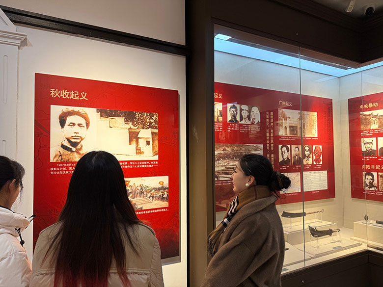 1月29日上午,实践团走进八七会议会址纪念馆,开展专题研学。展厅以“风云突变”“星火燎原”等板块为主线,生动呈现大革命失败后,中国共产党勇于自我革命、坚决纠正错误的历史性抉择。队员们认真聆听讲解、驻足观看展陈,深刻体会中国共产党在民族危难之际的政治勇气与战略远见,感受党在挫折中奋起的伟大转折。在“八七红”志愿服务展区,大家了解到一代代志愿者以红色讲解、实践宣讲赓续革命精神的实践,接受了一场触及思想深处的精神洗礼。