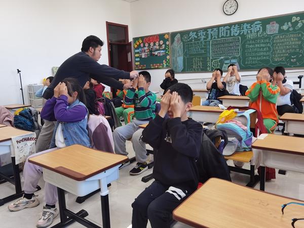 经过一年授课指导,教师们深入掌握了明目功,于是学校开始正式带领学生练习。“班主任和体育教师对学生开展护眼常识普及和功法教学指导。体育老师在课上一对一指导学生,通过图示演示、动作演示、对比感受、同学互助等方式帮助学生找准穴位,班主任则利用课业辅导时间继续调整孩子的动作、呼吸。”刘海彬说。