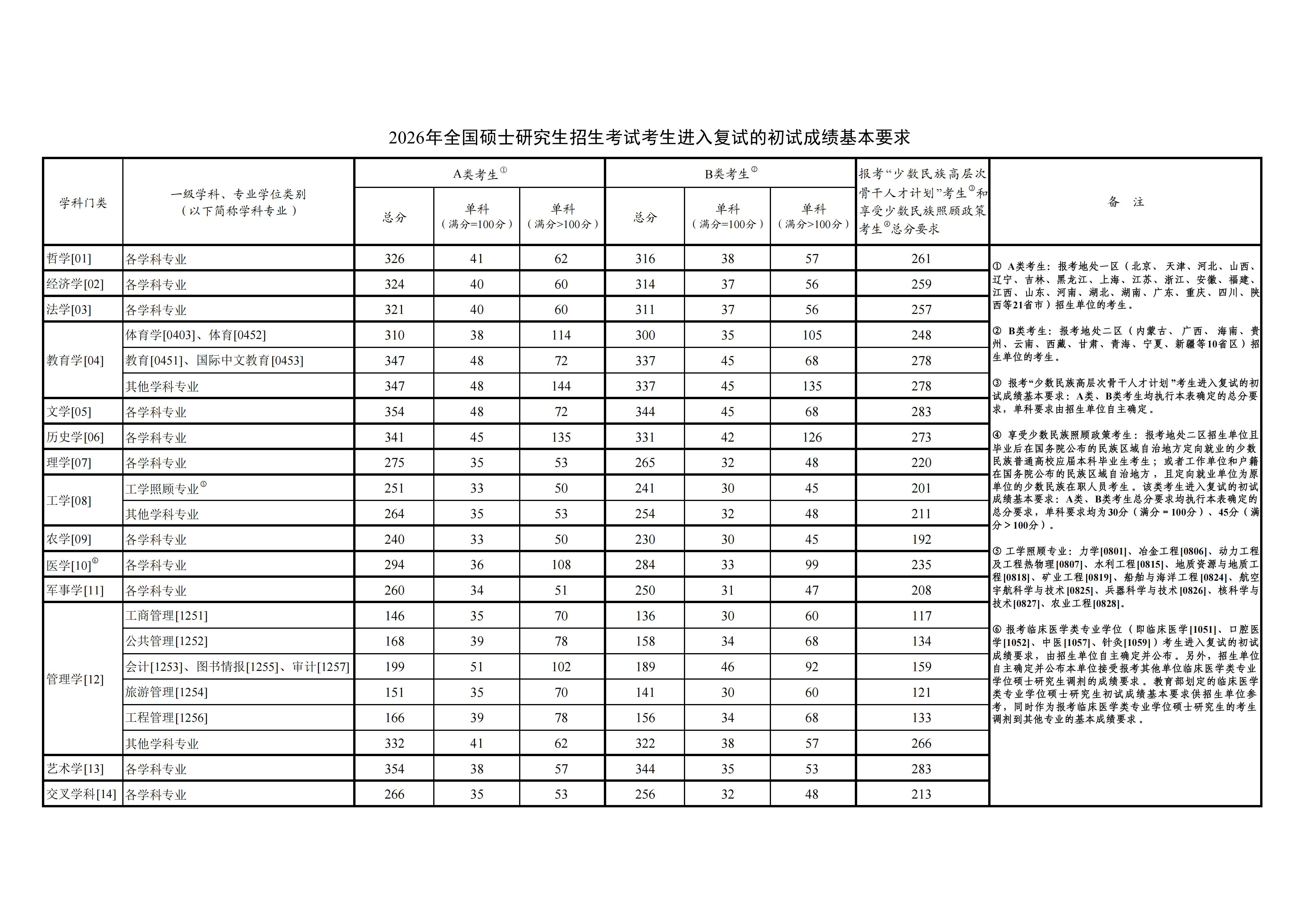 《2026年全国硕士研究生招生考试考生进入复试的初试成绩基本要求》(国家分数线)