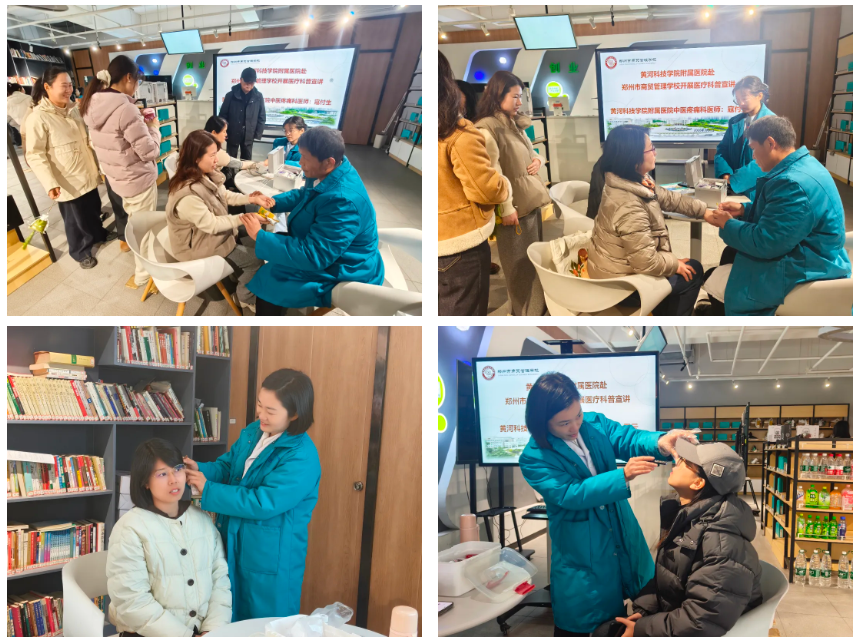 寇医生为教职工进行把脉问诊、针灸、推拿等中医诊疗服务,针对性缓解因长期工作引发的腰椎、颈椎等职业性劳损问题。同时,系统讲解中医养生知识及常见疼痛类疾病的预防与调理方法,内容实用易懂,让大家真正学得会、用得上。
