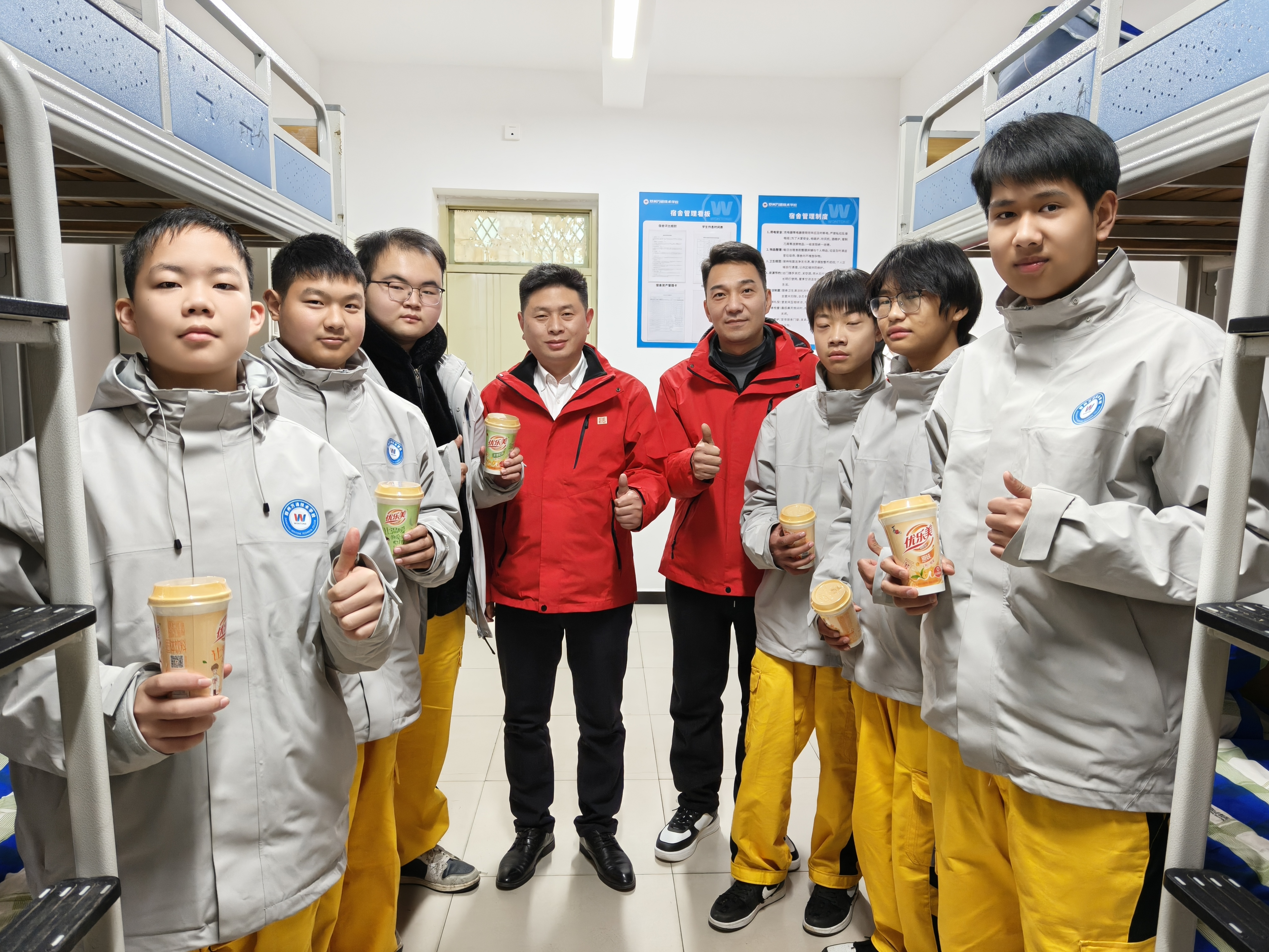 校园守护不止于日间,更延伸至深夜。学校坚持每晚例行查寝,值班老师逐间查看学生休息情况,叮嘱安全事项。校长带队深夜走访宿舍,为学子送上温热奶茶与暖心问候,用细微关怀传递家的温暖,消解学子异乡孤独感。