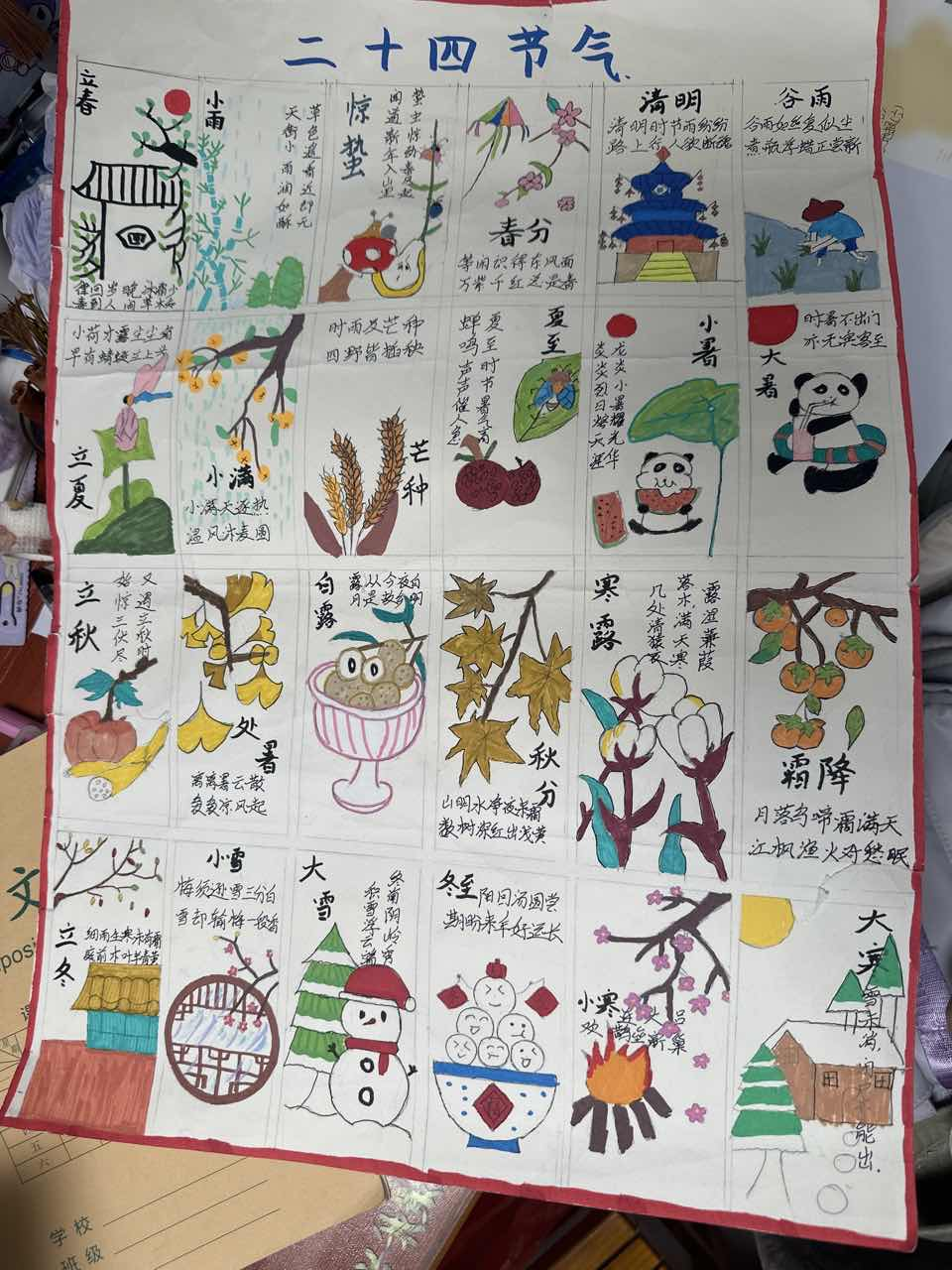 在创作过程中,同学们深入探究节气背后的地理原理,精准把握昼夜长短变化、四季更替规律、区域物候差异等知识要点,将抽象的地理概念转化为直观可感的作品。大家不仅巩固了学科知识、提升了实践能力与创新思维,更深刻体会到古人顺应自然、尊重规律的生存智慧,感受到中华优秀传统文化的博大精深。